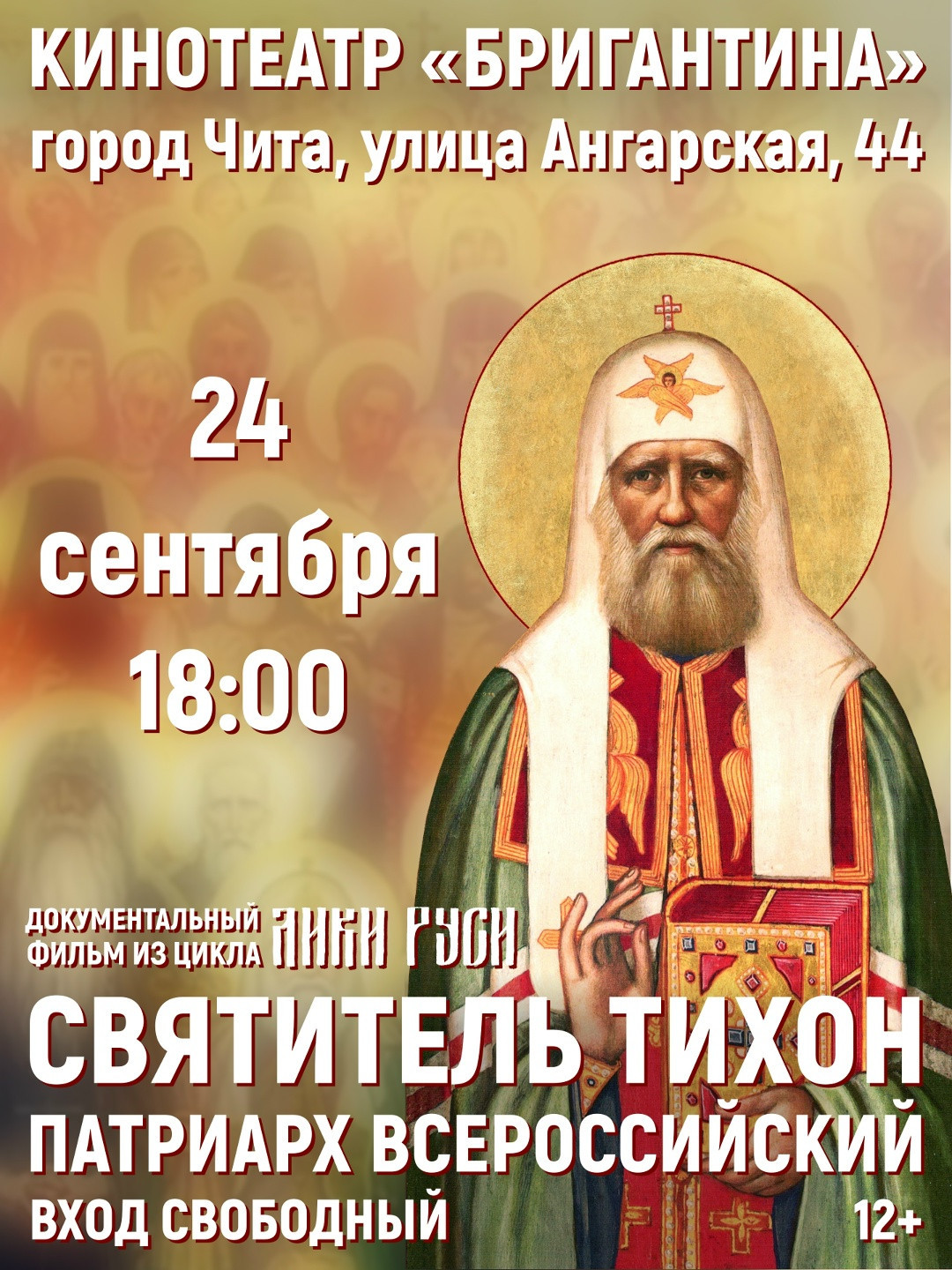 По благословению митрополита Читиского и Петровск-Забайкальского Димитрия в кинотеатре «Бригантина» состоится показ документального фильма о Патриархе Тихоне, снятого к 100-летию блаженной кончины Святителя и 160-летию со дня его рождения.