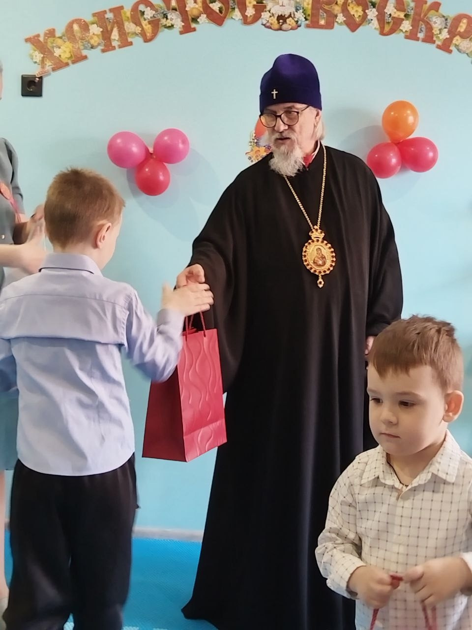 По завершении утренника митрополит Димитрий вручил подарки участникам и гостям праздника, а затем состоялось тёплое семейное чаепитие с куличами и сладостями!