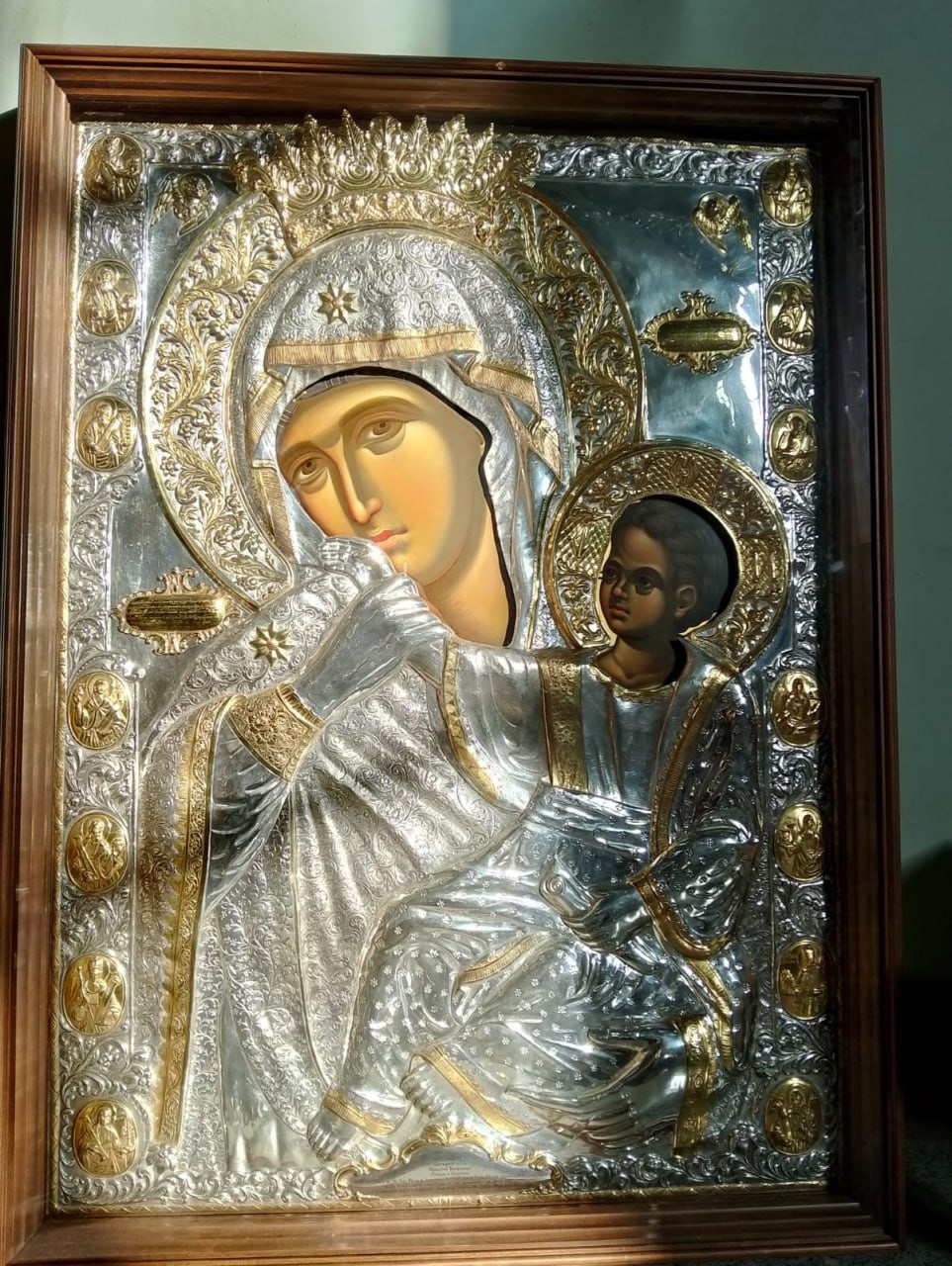 Принесенный список является точной копией чудотворной иконы Божией Матери «Отрада и Утешение» хранящейся в Ватопедском монастыре Афона. Образ написан на Афоне специально для Забайкальской митрополии и преподнесен в дар благодетелями.