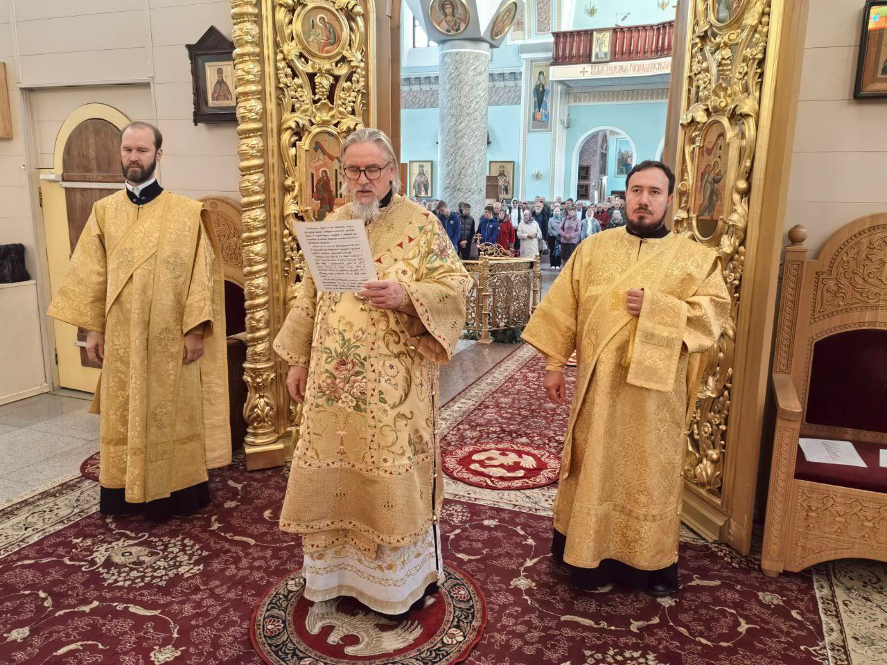 Его Высокопреосвященству сослужили клирики Казанского кафедрального собора: протоиерей Михаил Андрусь; насельник Успенского мужского монастыря города Читы — иеромонах Феофан (Груша); иерей Валерий Шаферов.