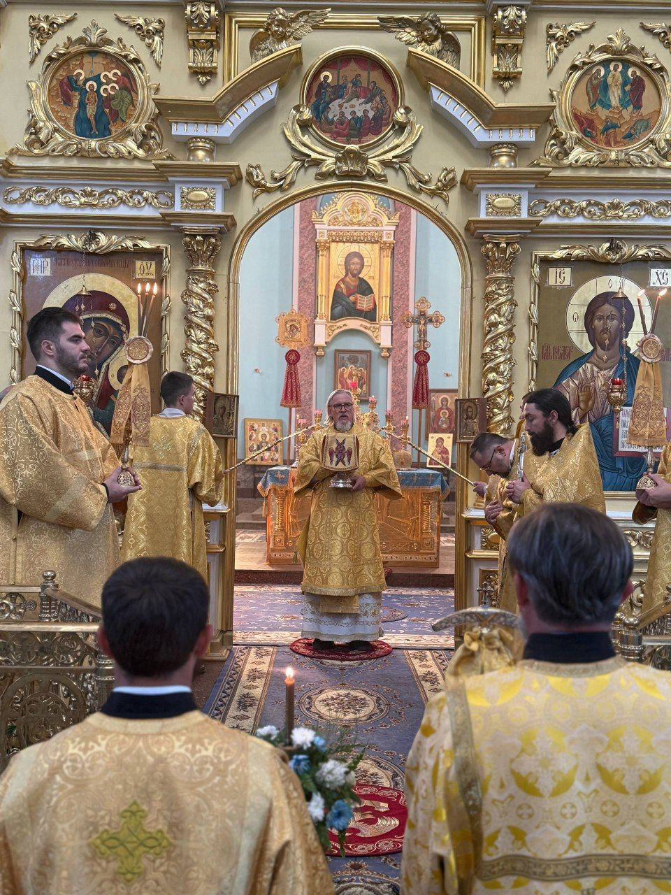 Диаконский чин: иеродиакон Иннокентий (Фёдоров), диакон Михаил Воробьёв, диакон Илия Хасанов, диакон Кирилл Усынин.
