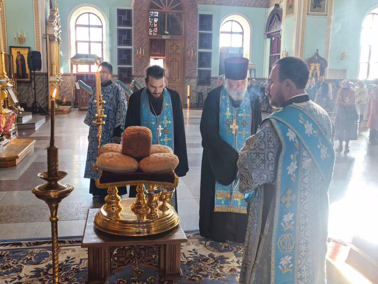 На великой вечерне митрополит Димитрий совершил литию с освящением хлебов, пшеницы, вина и елея.