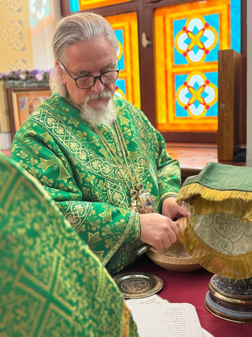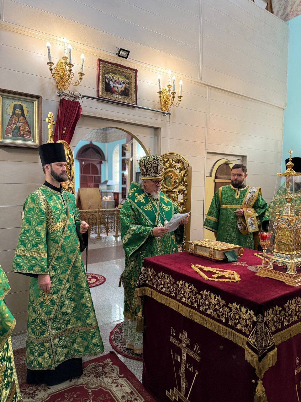 Его Высокопреосвященству сослужили: иерей Алексей Шаталов, иерей Алексей Янковский, иерей Валерий Шаферов и иерей Дионисий Миронов.