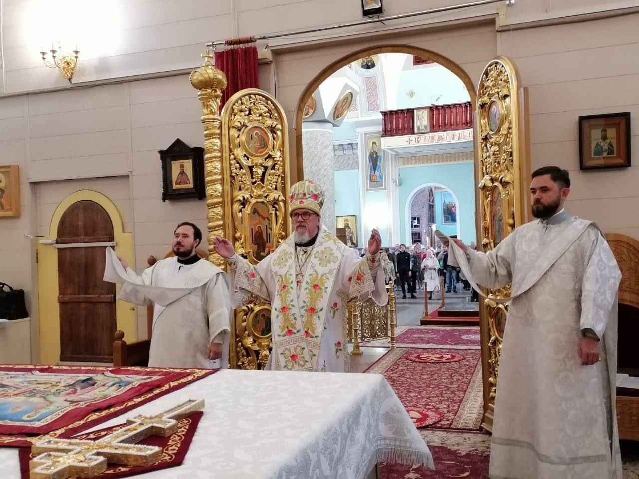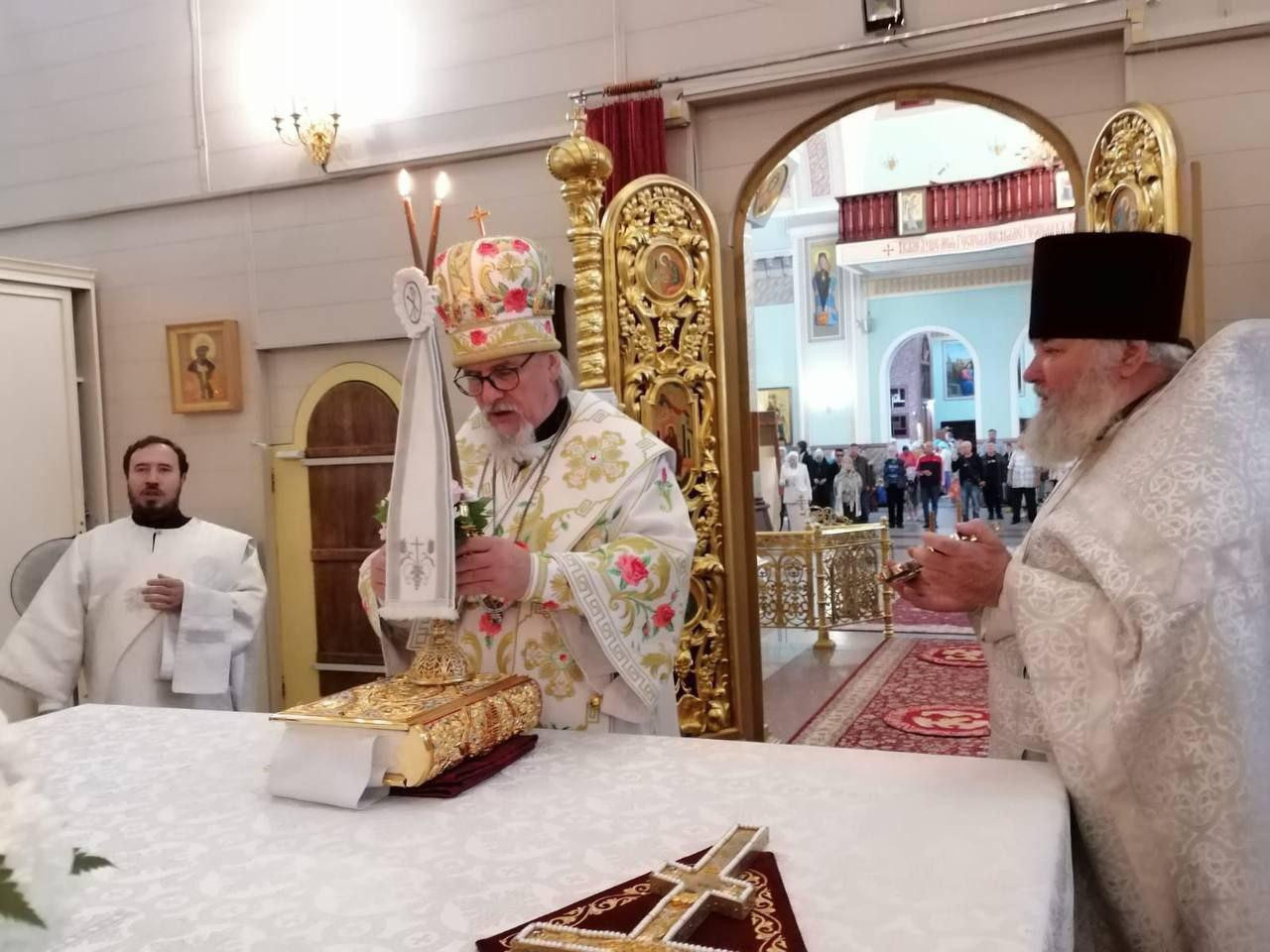 Его Высокопреосвященству сослужили: клирики Казанского кафедрального собора г. Читы протоиерей Андрей Федотов; иерей Валерий Шаферов, иерей Дионисий Миронов.