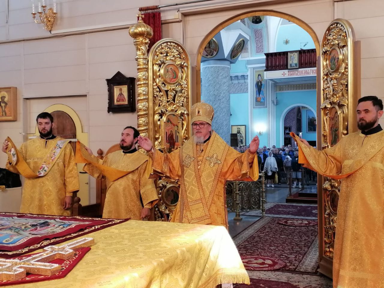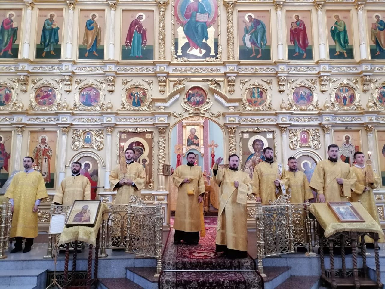 Его Высокопреосвященству сослужили: протоиерей Андрей Федотов, иеромонах Феофан (Груша), иерей Валерий Шаферов, иерей Дионисий Миронов.