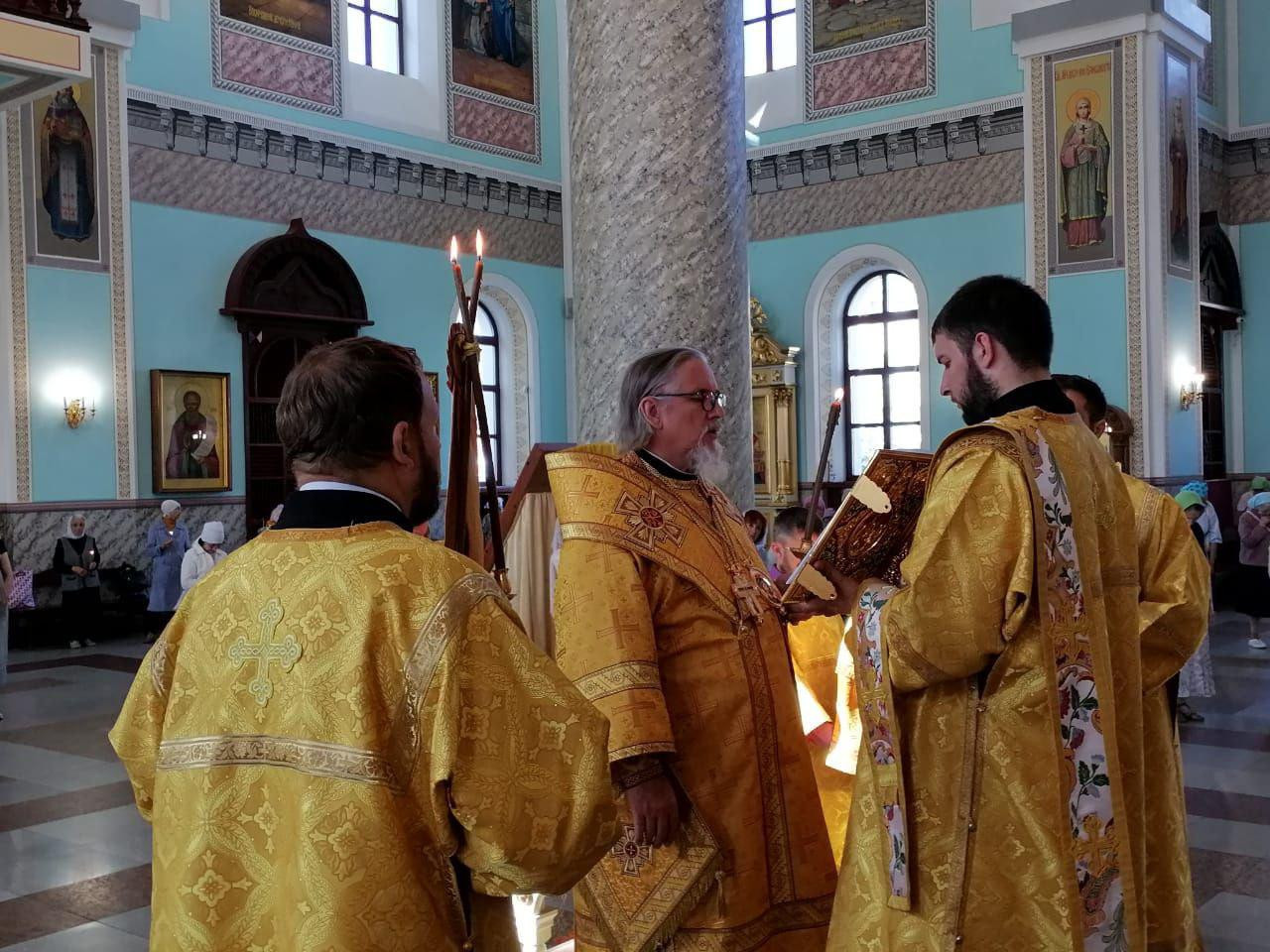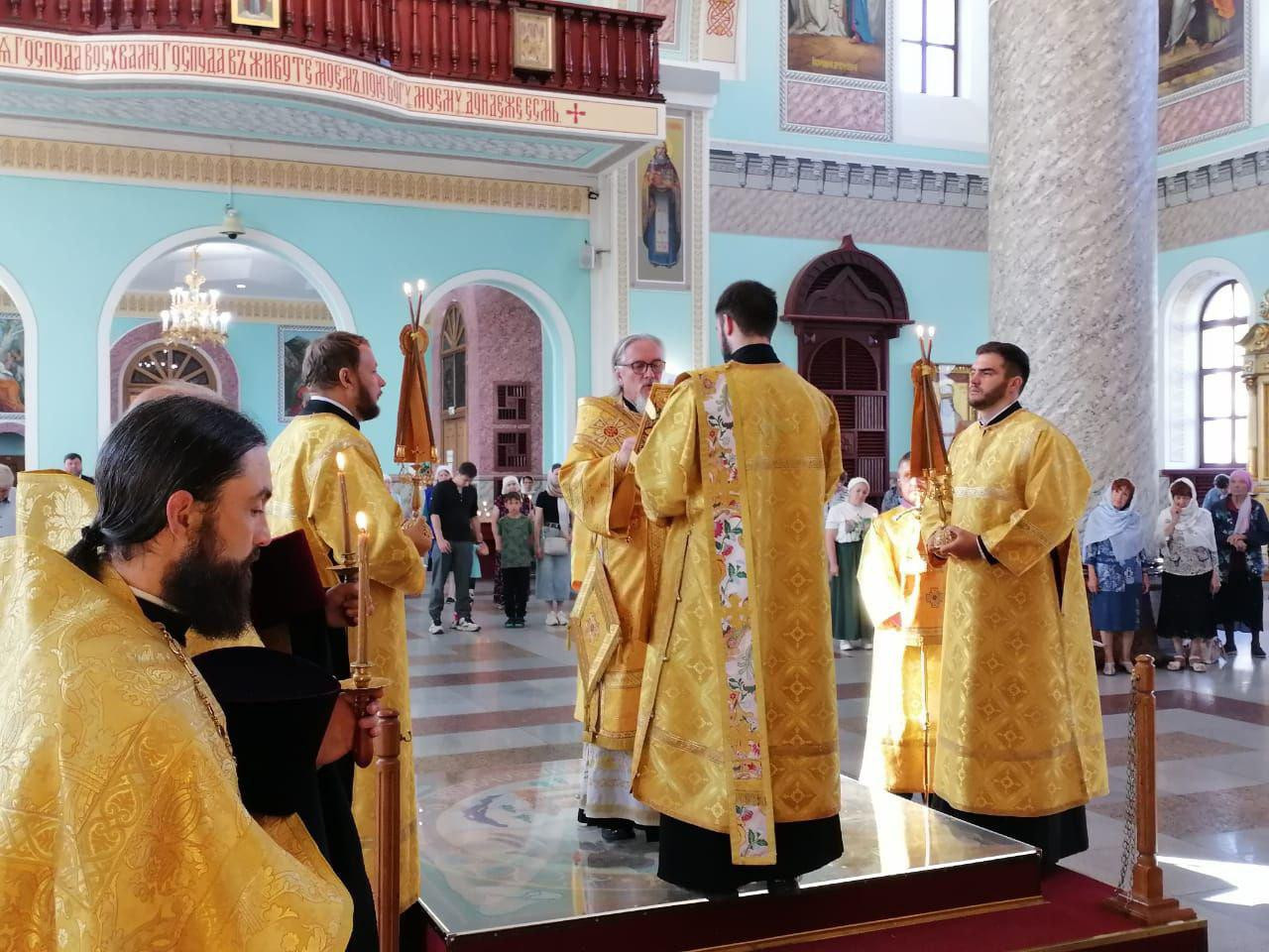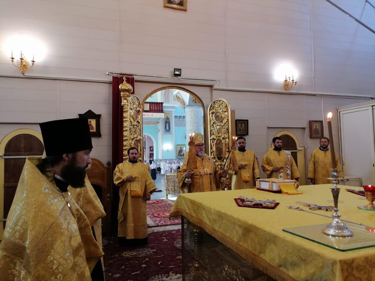 Его Высокопреосвященству сослужили: протоиерей Андрей Федотов, иеромонах Феофан (Груша), иерей Валерий Шаферов, иерей Дионисий Миронов.