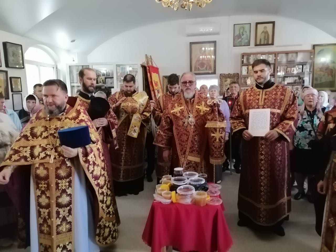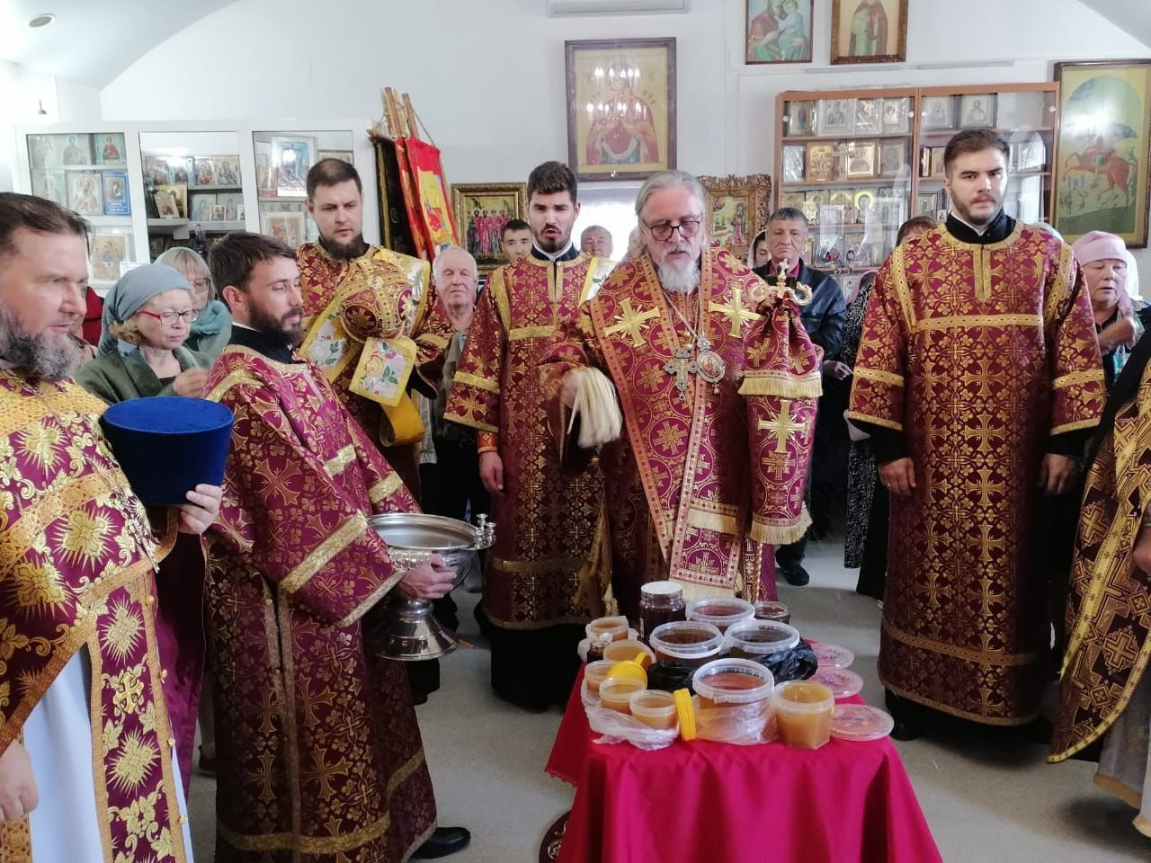 После отпуста Литургии митрополит Димитрий, с духовенством и прихожанами возглавил крестный ход вокруг храма, после чего, владыка совершил освящение мёда нового сбора, полагающееся по уставу в этот день.