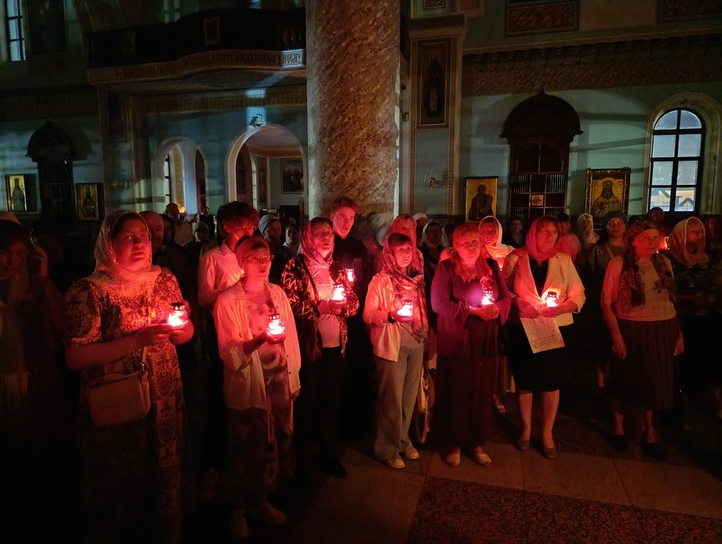 В ночь с 16 на 17 июля 2025 года, в день памяти Царственных страстотерпцев: императора Николая II, императрицы Александры, царевича Алексия, великих княжен Ольги, Татианы, Марии и Анастасии, митрополит Читинский и Петровск-Забайкальский Димитрий совершил Божественную литургию в кафедральном соборе Казанской иконы Божией Матери города Читы.