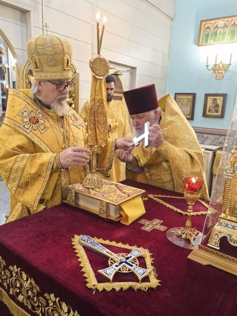 Его Высокопреосвященству сослужили клирики Казанского кафедрального собора протоиерей Андрей Федотов и иерей Валерий Шаферов.