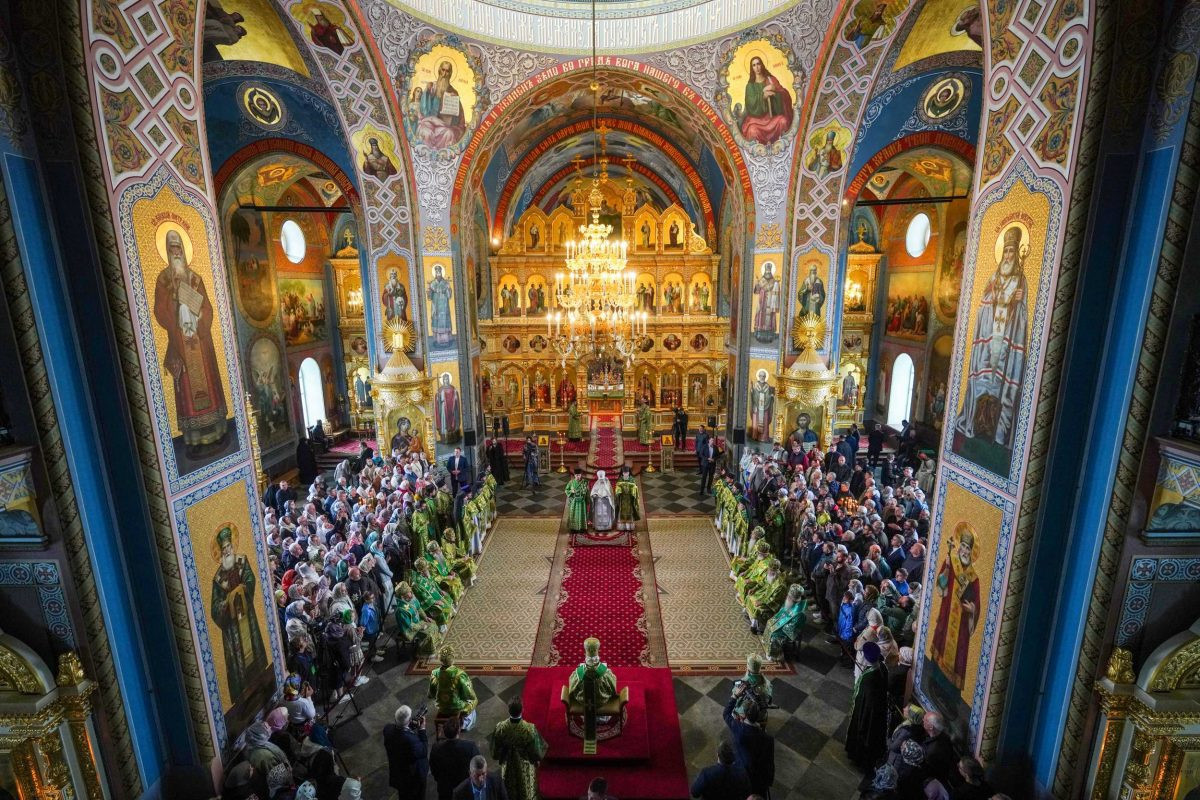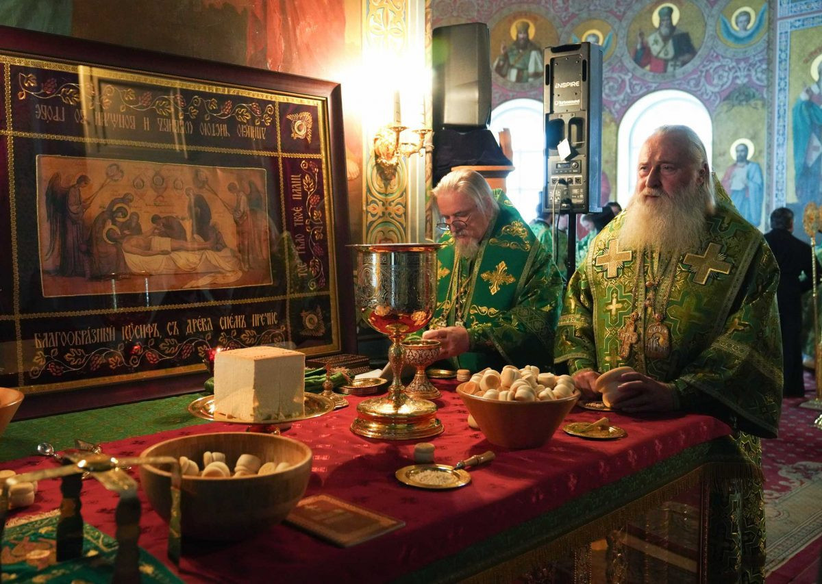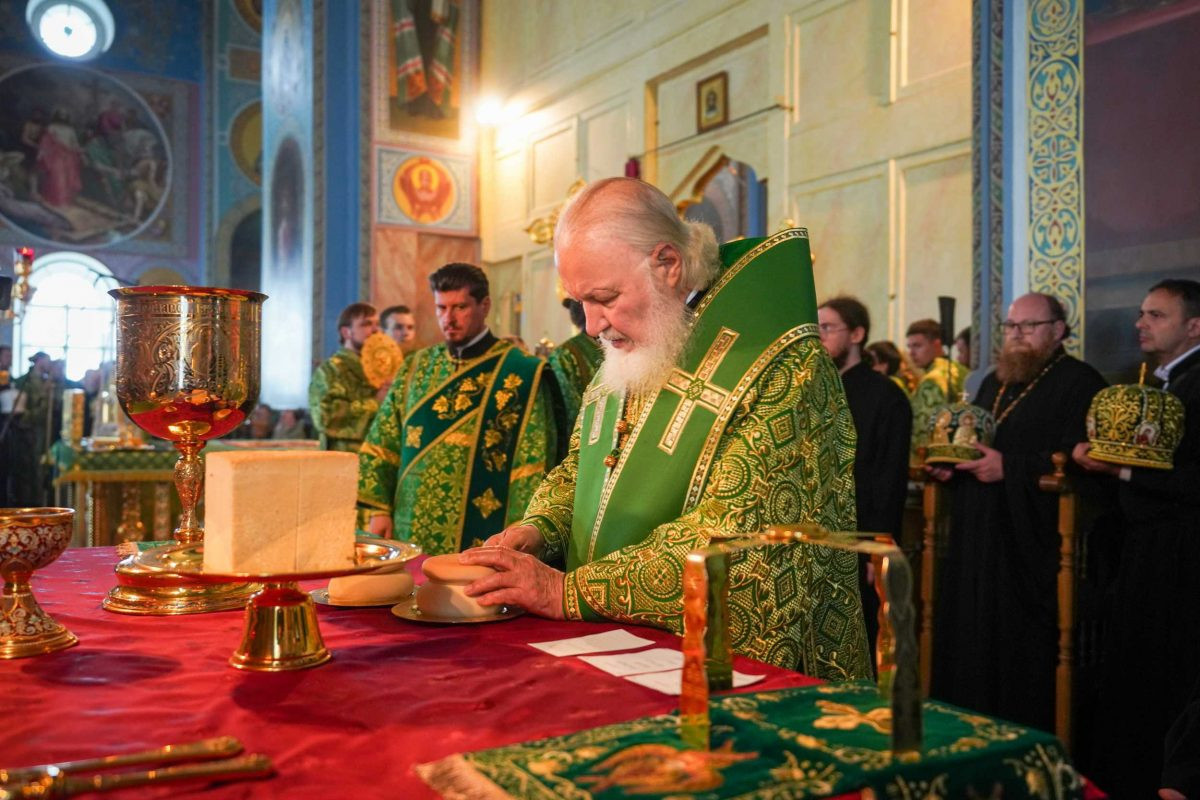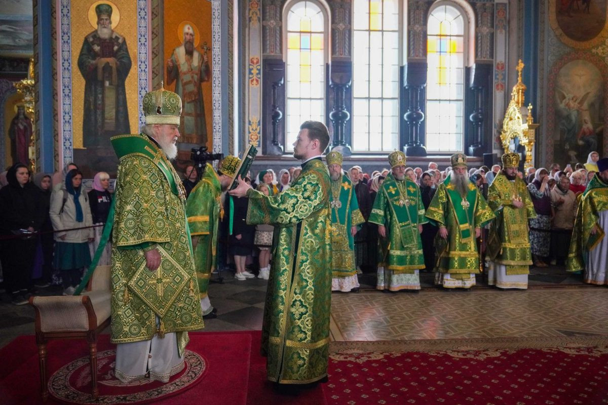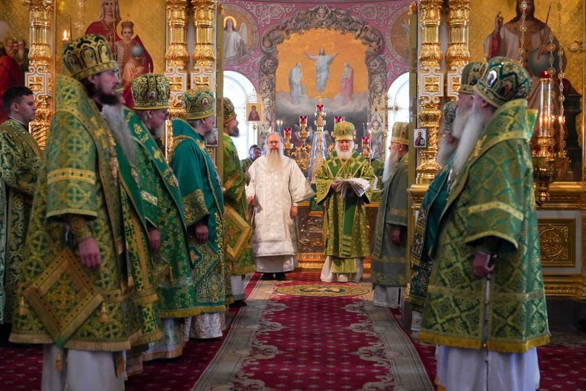 На сугубой ектении были вознесены особые прошения. Предстоятель Русской Церкви прочитал молитву о Святой Руси.