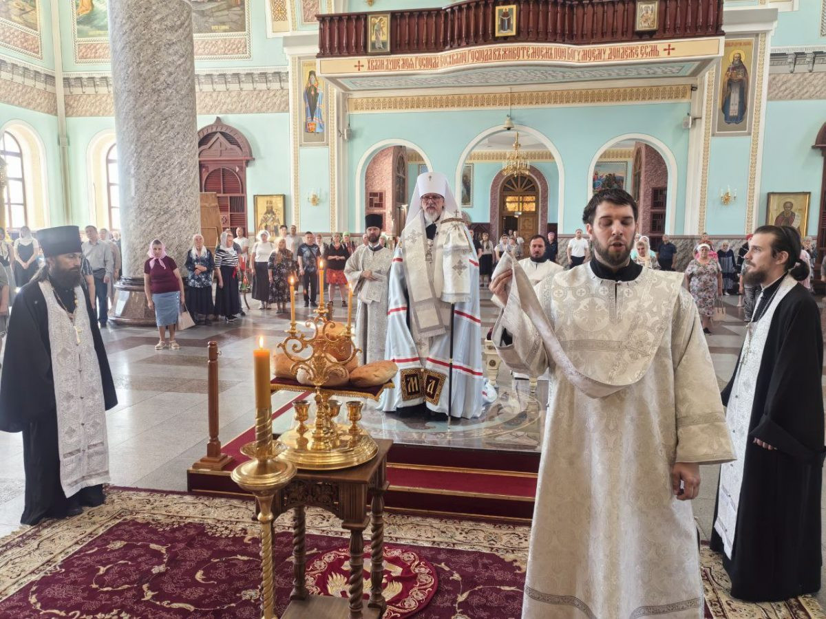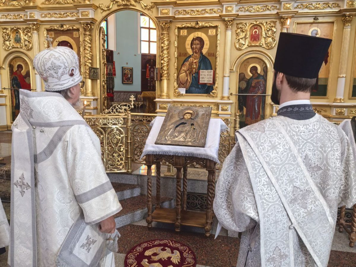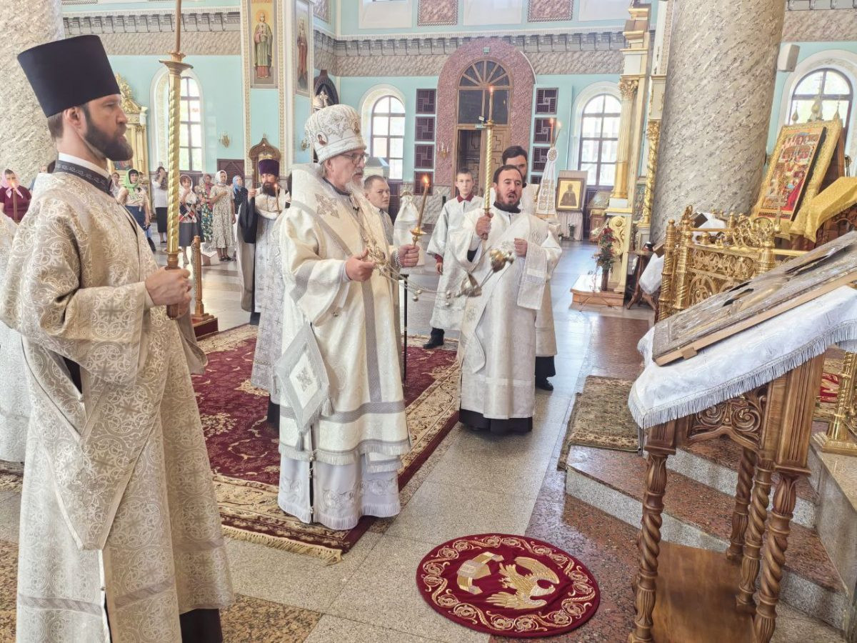 Его Высокопреосвященству сослужили: насельник Успенского мужского монастыря г. Читы иеромонах Феофан (Груша); клирики Казанского кафедрального собора иерей Валерий Шаферов и иерей Дионисий Миронов.