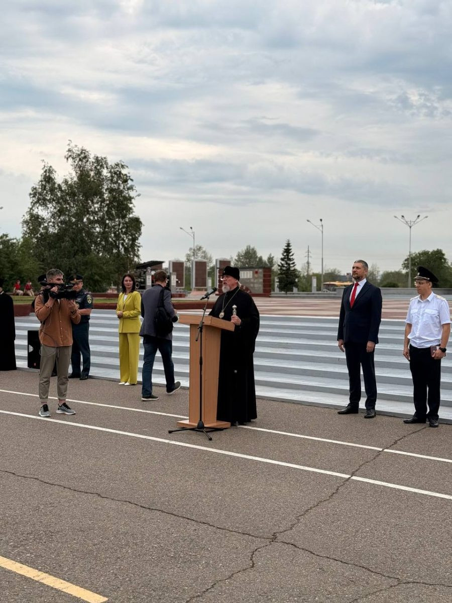 3 июля 2025 года митрополит Читинский и Петровск-Забайкальский Димитрий принял участие в гарнизонном разводе нарядов ДПС перед заступлением на службу.