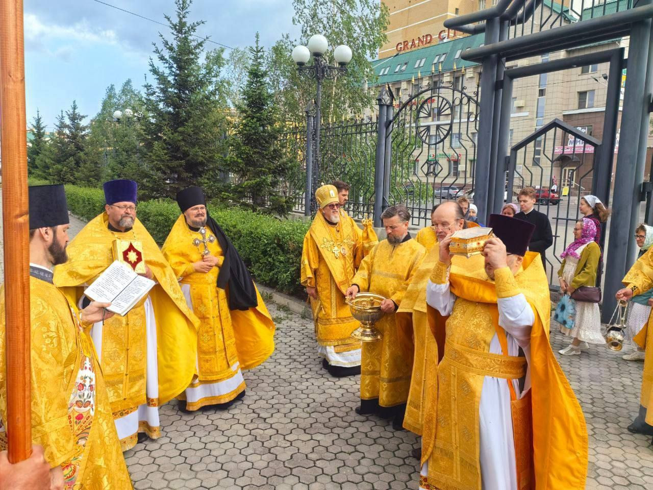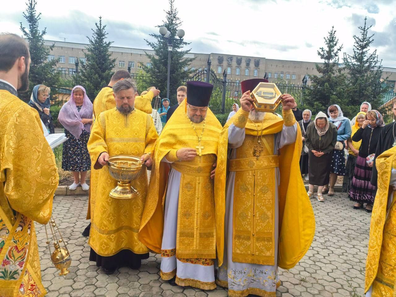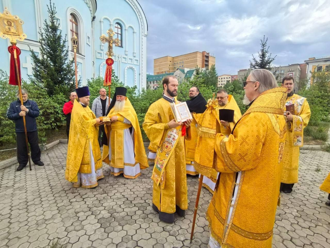 После Божественной литургии, владыка возглавил крестный ход вокруг храма сопровождаемый особыми прошениями и молитвами о ниспослании дождя.