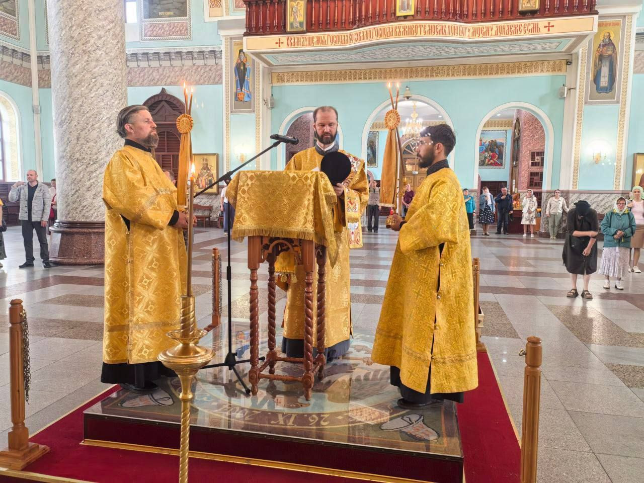 Диаконский чин возглавили: иеродиакон Иннокентий (Фёдоров), диакон Илия Хасанов и диакон Кирилл Усынин.