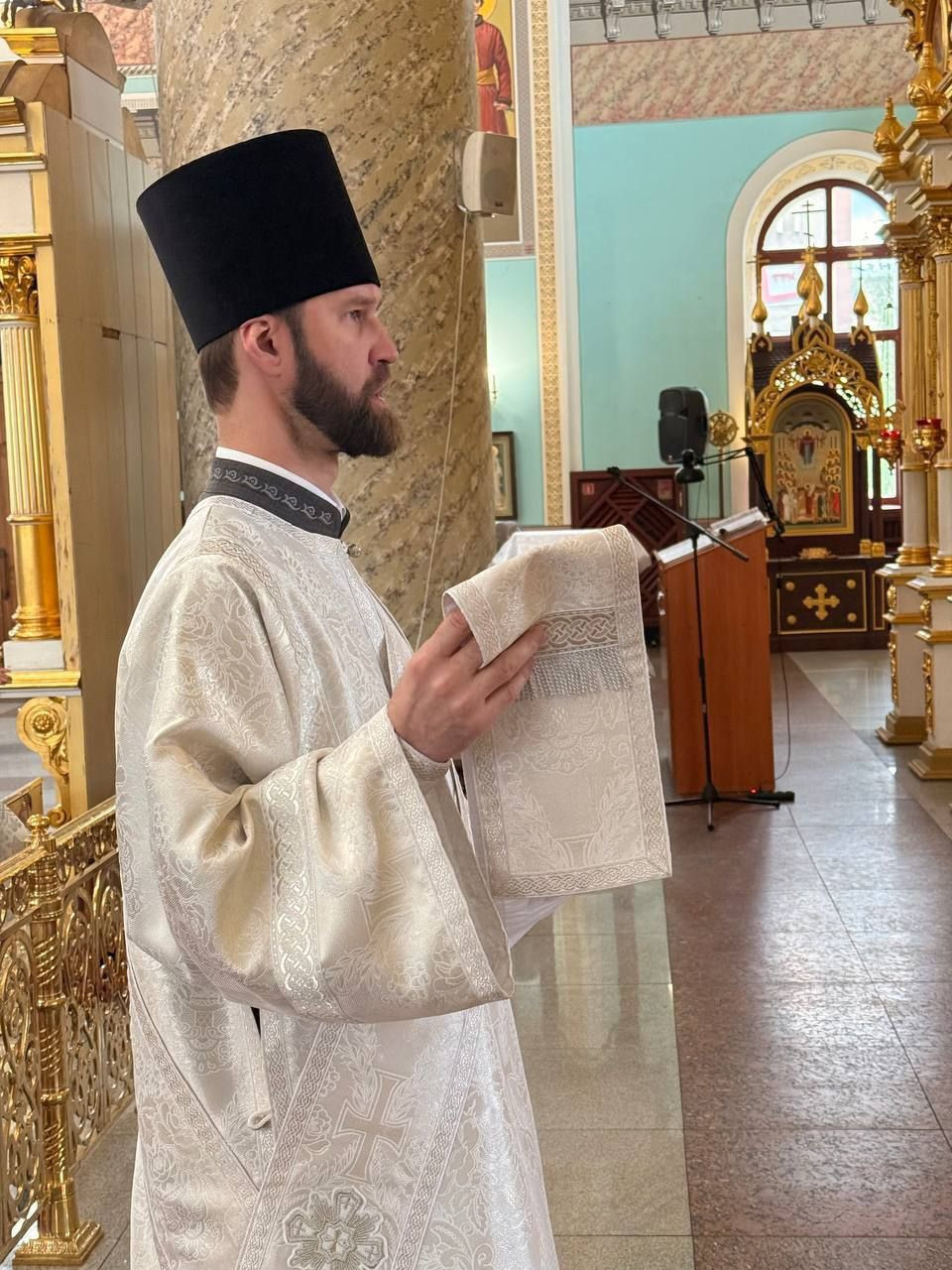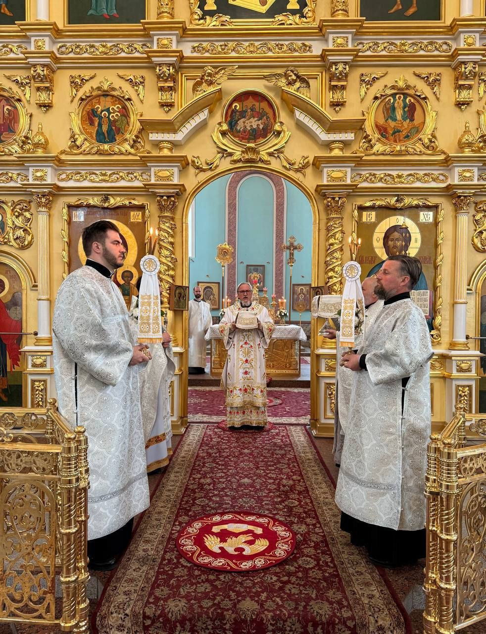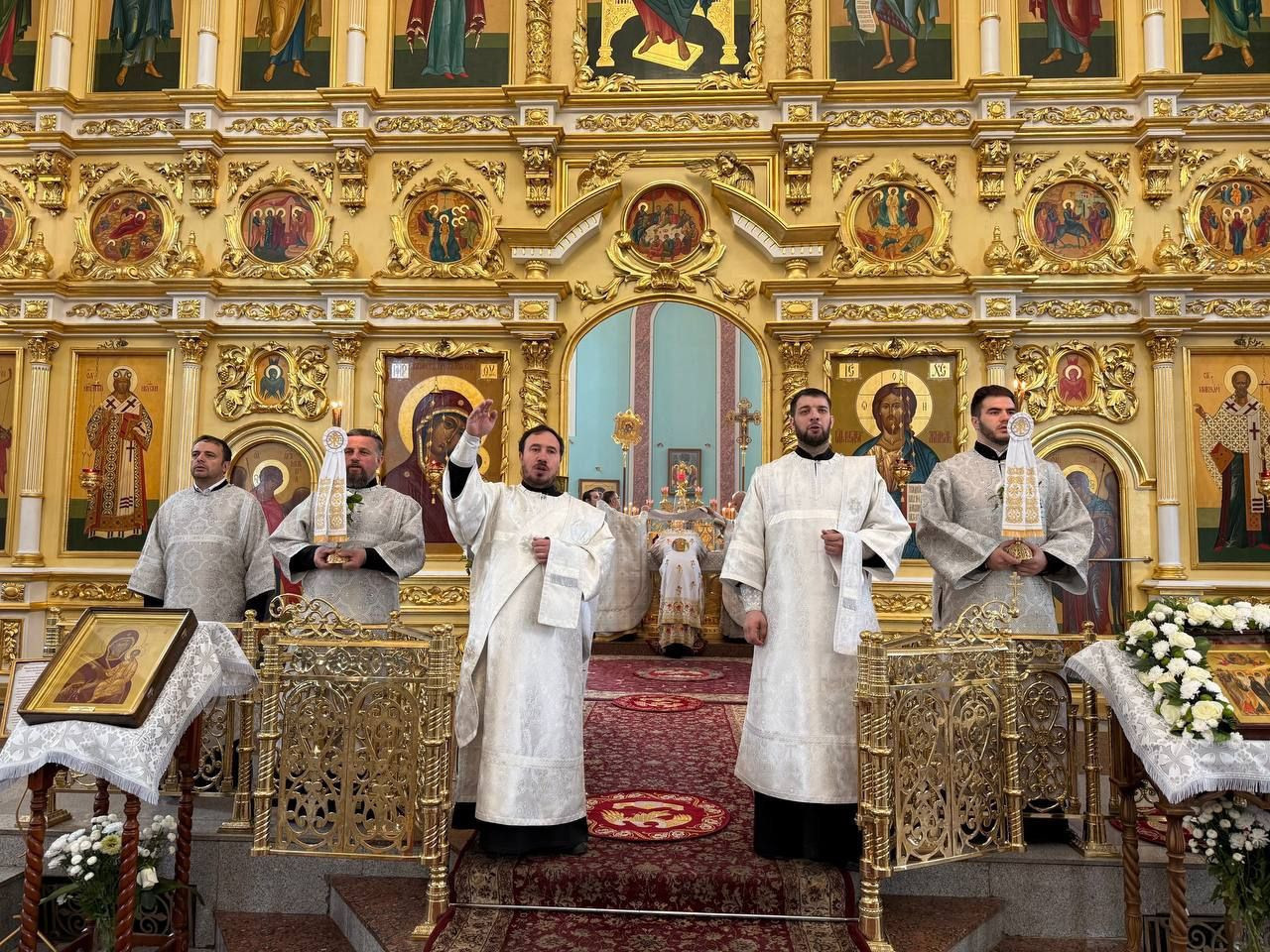 Диаконский чин: иеродиакон Иннокентий (Фёдоров), диакон Михаил Воробьёв, диакон Андрей Лощенко.