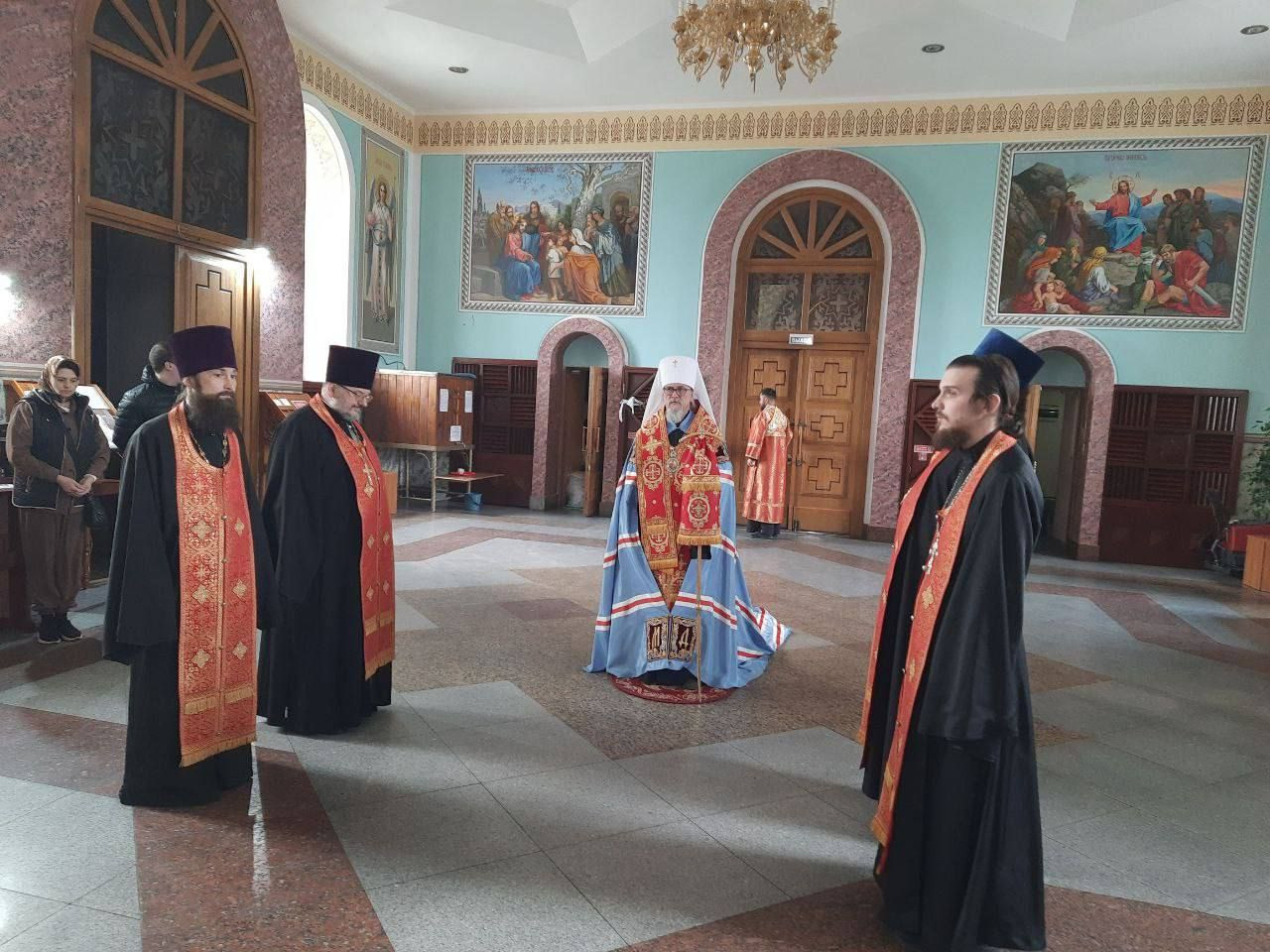 Его Высокопреосвященству сослужил клир собора: