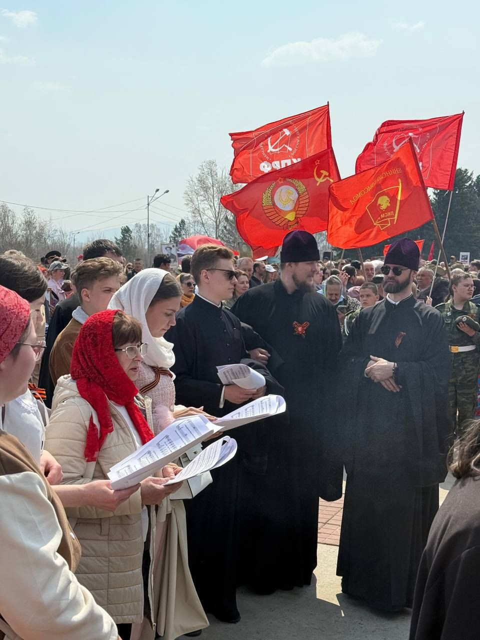 Мероприятие проходило в парке Победы. В конце владыка в сослужении клириков Читинской епархии совершили заупокойную Литию нашим воинам героям!