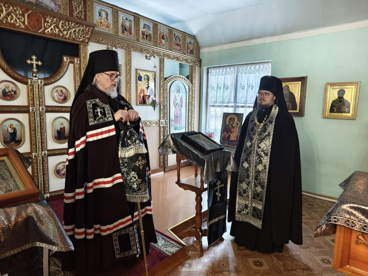 За богослужением молились: настоятель обители игумен Софроний (Валов), насельники и прихожане мужского монастыря.