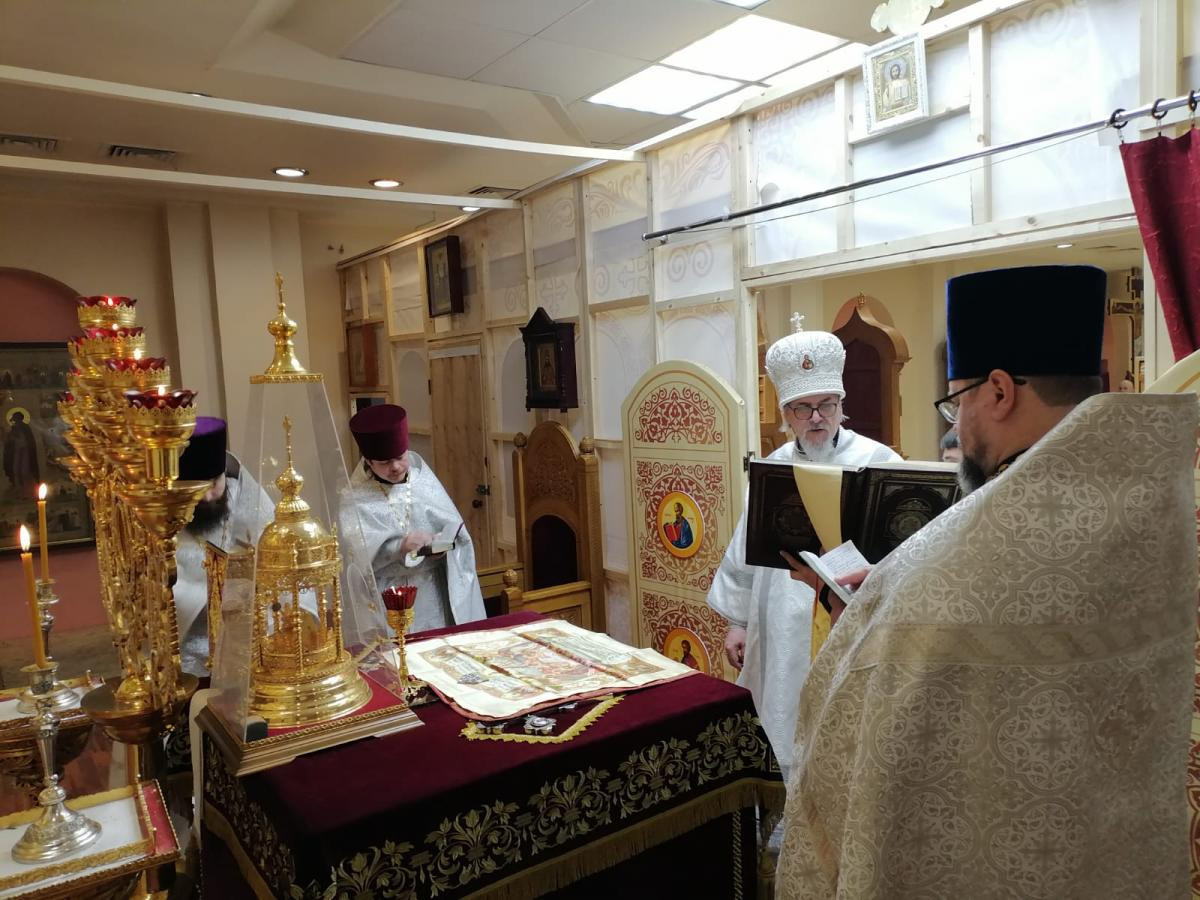 Его Высокопреосвященству сослужили: настоятель храма благоверного князя Александра Невского в селе Кыра иерей Андрей Размахнин; настоятель храма великомученика Димитрия Солунского г. Читы иерей Алексий Шаталов; клирик Казанского кафедрального собора г. Читы иерей Валерий Шаферов.
