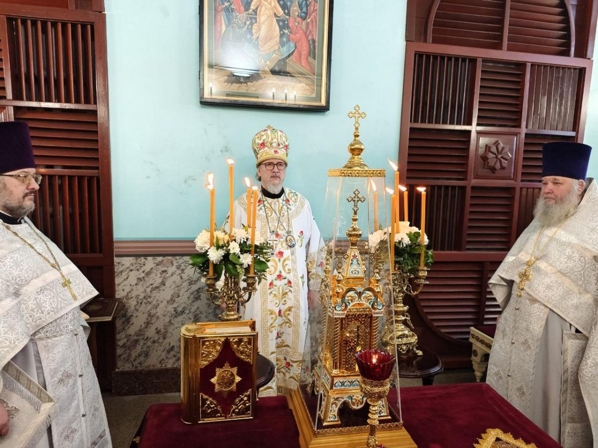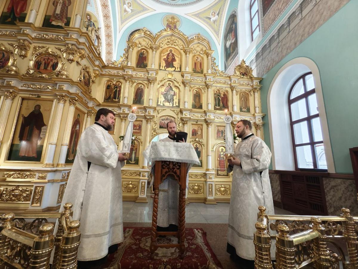 Его Высокопреосвященству сослужили: клирики Казанского кафедрального собора г. Читы протоиерей Андрей Федотов, протоиерей Михаил Андрусь и иерей Валерий Шаферов; насельник Успенского мужского монастыря г. Читы иеромонах Феофан (Груша).