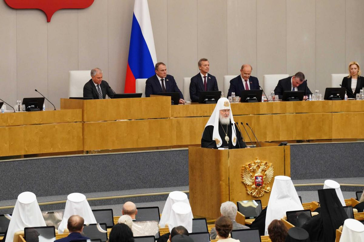 В этот день Святейший Патриарх Московский и всея Руси Кирилл и председатель Государственной Думы В.В. Володин вручили награды и памятные подарки победителям XX Международного конкурса детского творчества «Красота Божьего мира. Времен связующая нить» и XIX Всероссийского конкурса в области педагогики, работы с детьми и молодежью до 20 лет «За нравственный подвиг учителя».