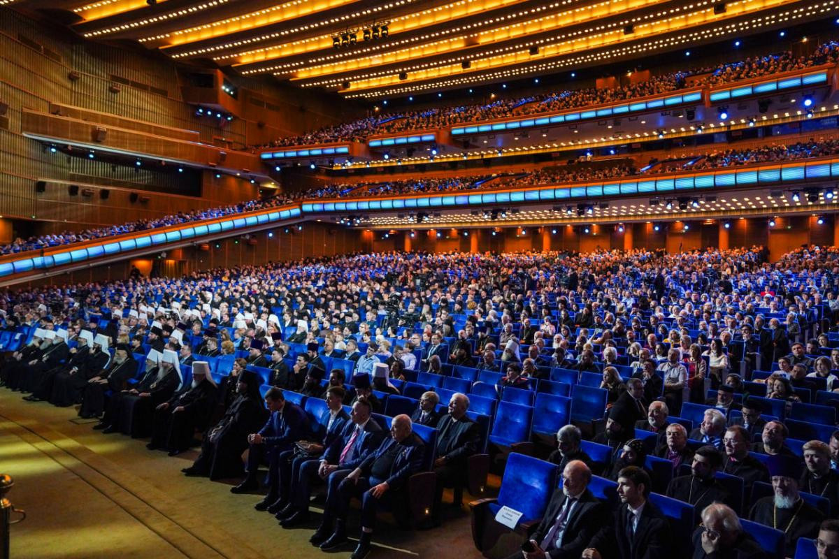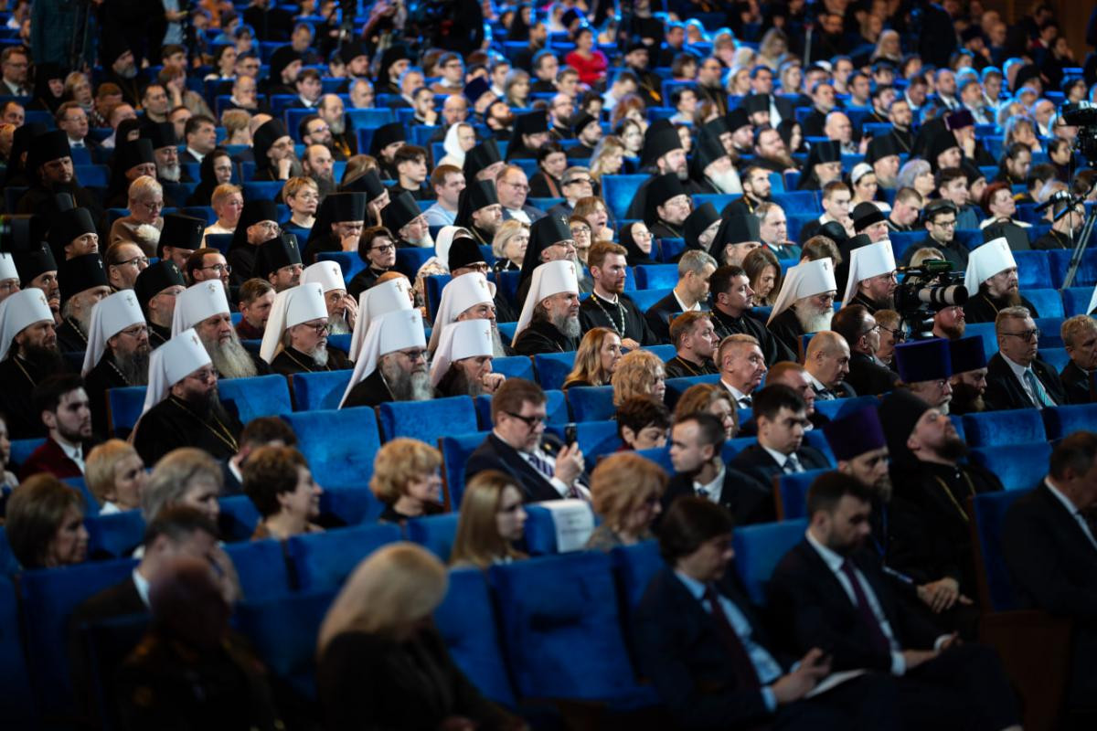 В зале Государственного Кремлевского дворца собралось свыше 5 тысяч человек: Преосвященные архипастыри — члены Священного Синода и Высшего Церковного Совета, главы экзархатов, митрополий и епархиальные архиереи Русской Православной Церкви, представители Поместных Православных Церквей, члены Межрелигиозного совета России, полномочные представители Президента Российской Федерации в федеральных округах, представители обеих палат российского парламента, руководители и представители федеральных и региональных органов власти, ректоры и представители свыше 250 российских и зарубежных вузов, директора и педагоги общеобразовательных организаций, священнослужители, приходские специалисты, деятели науки и культуры.