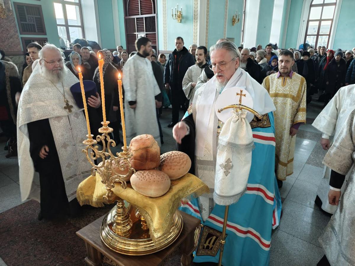 Во время всенощного бдения были совершены великое повечерие, лития с освящением хлебов, вина и елея и утреня с чтением Евангелия и помазанием всех молящихся освященным елеем.
