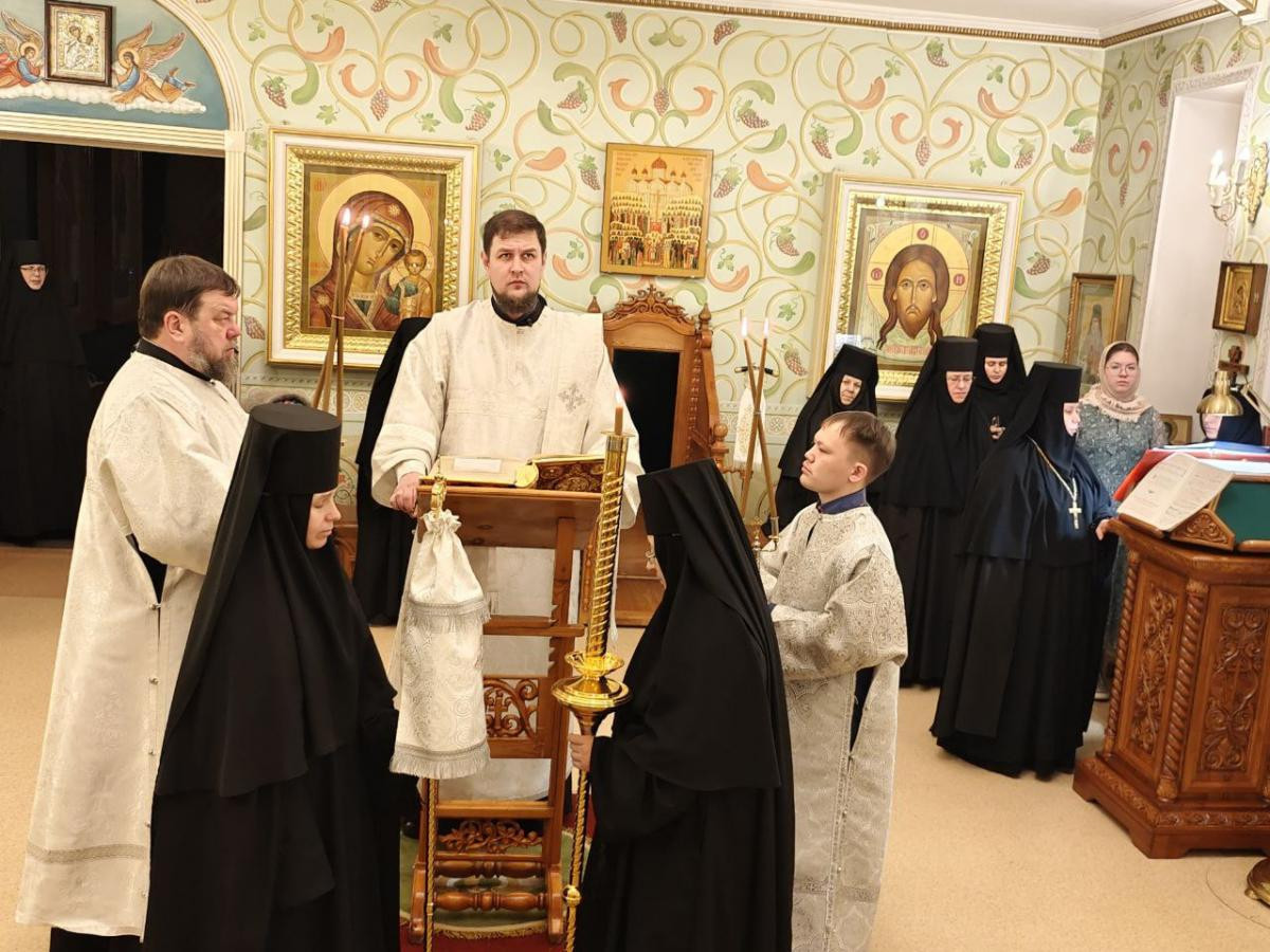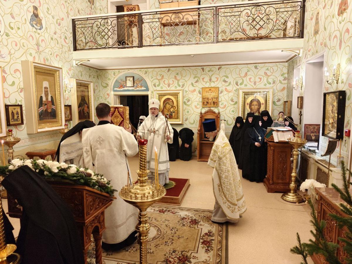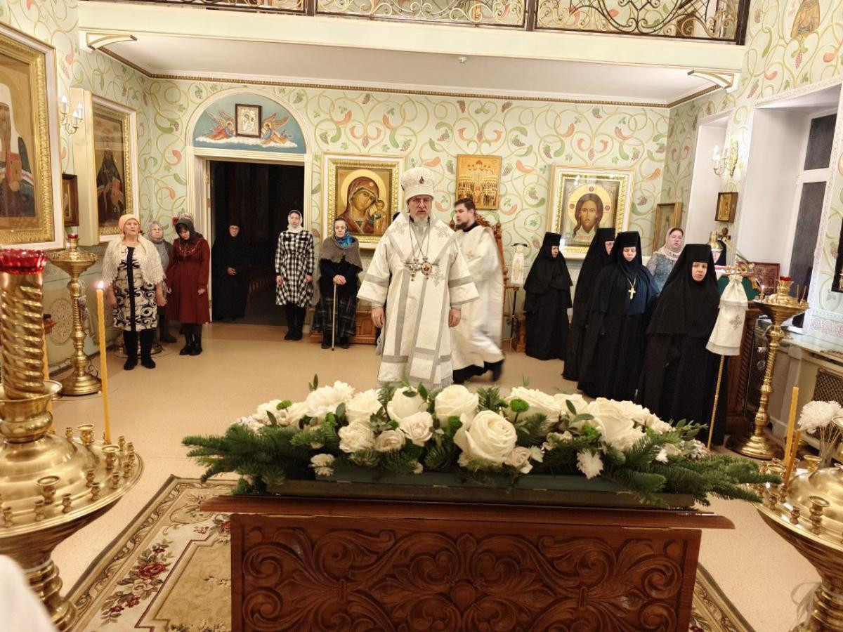 Его Высокопреосвященству сослужили клирики женского монастыря иеромонах Алипий (Федотов) и иерей Владимир Новоспасский.