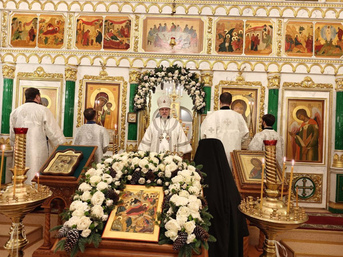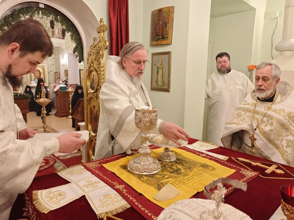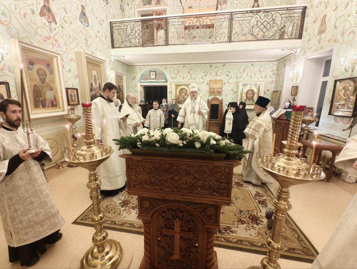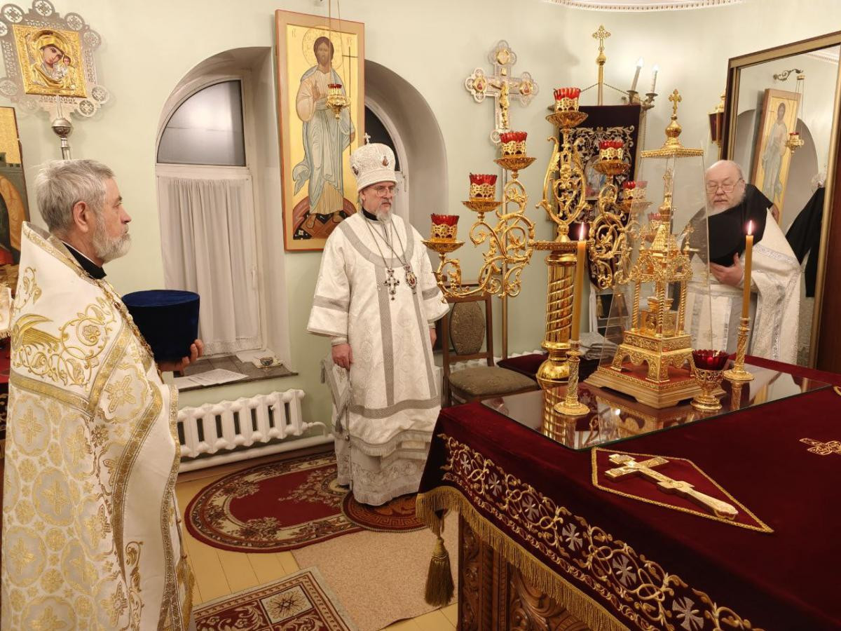 Его Высокопреосвященству сослужили клирики женского монастыря иеромонах Алипий (Федотов) и иерей Владимир Новоспасский.
