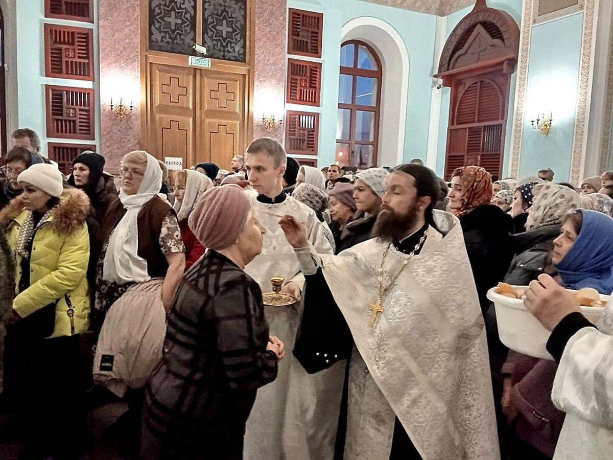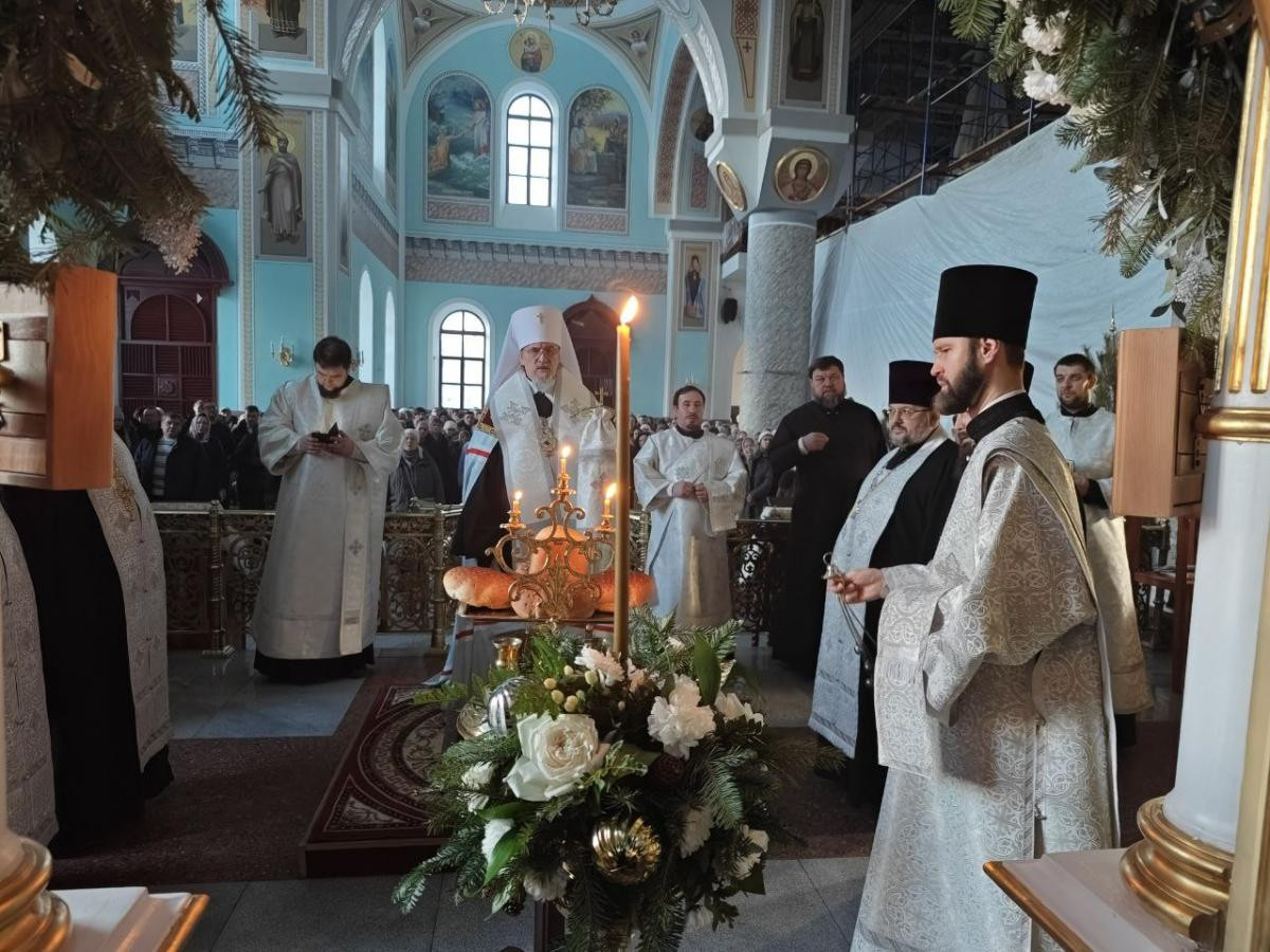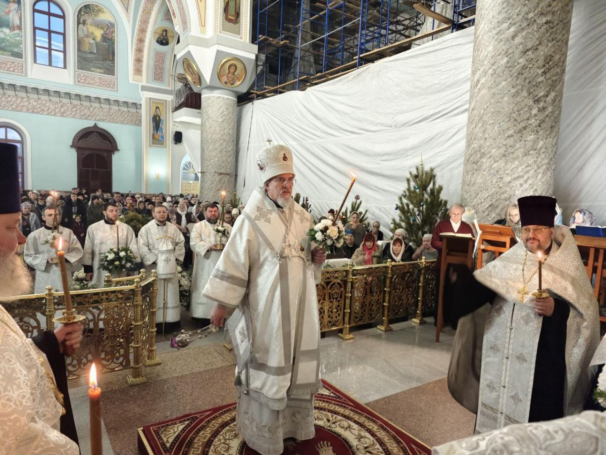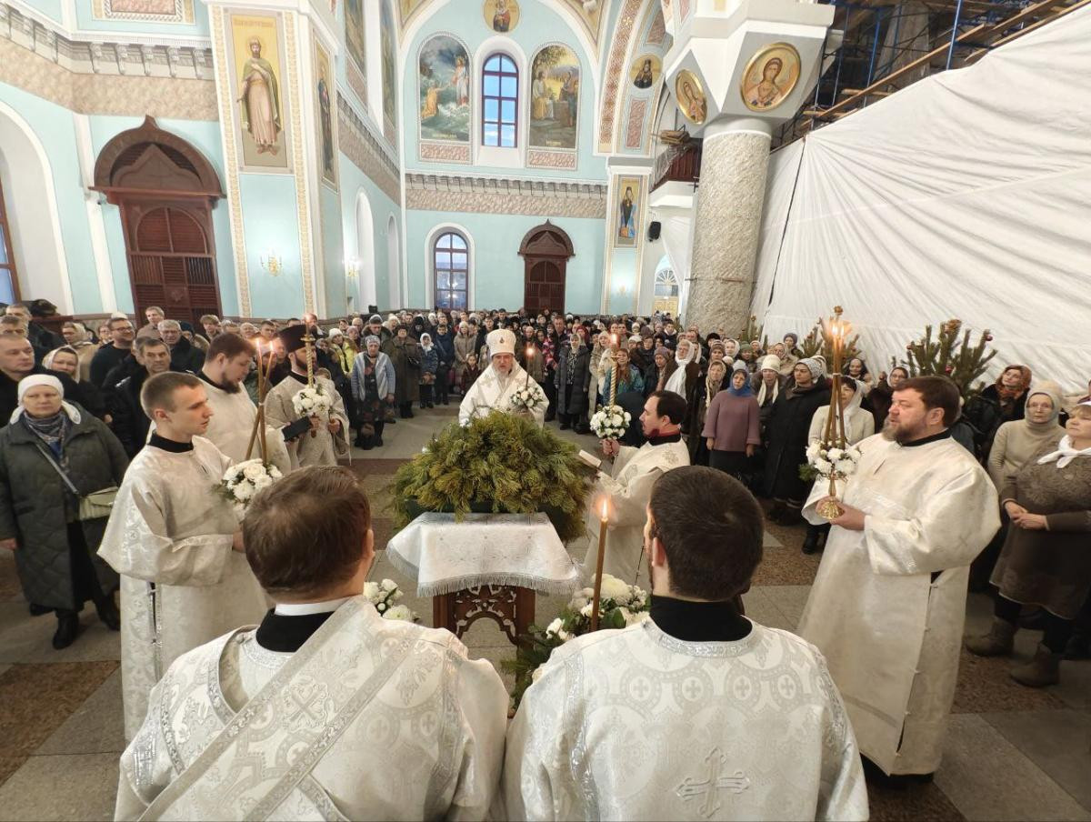 Вечером 6 января 2025 года, в канун праздника Рождества Господа Бога и Спаса нашего Иисуса Христа, митрополит Читинский и Петровск-Забайкальский Димитрий совершил великое повечерие и утреню в кафедральном соборе Казанской иконы Божией Матери города Читы.