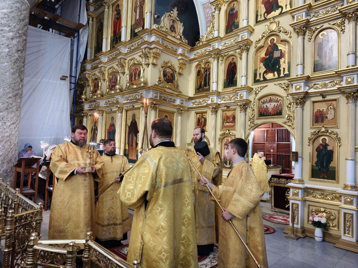 Диаконский чин: иеродиакон Иннокентий (Федоров); диакон Илия Хасанов; диакон Дионисий Миронов.