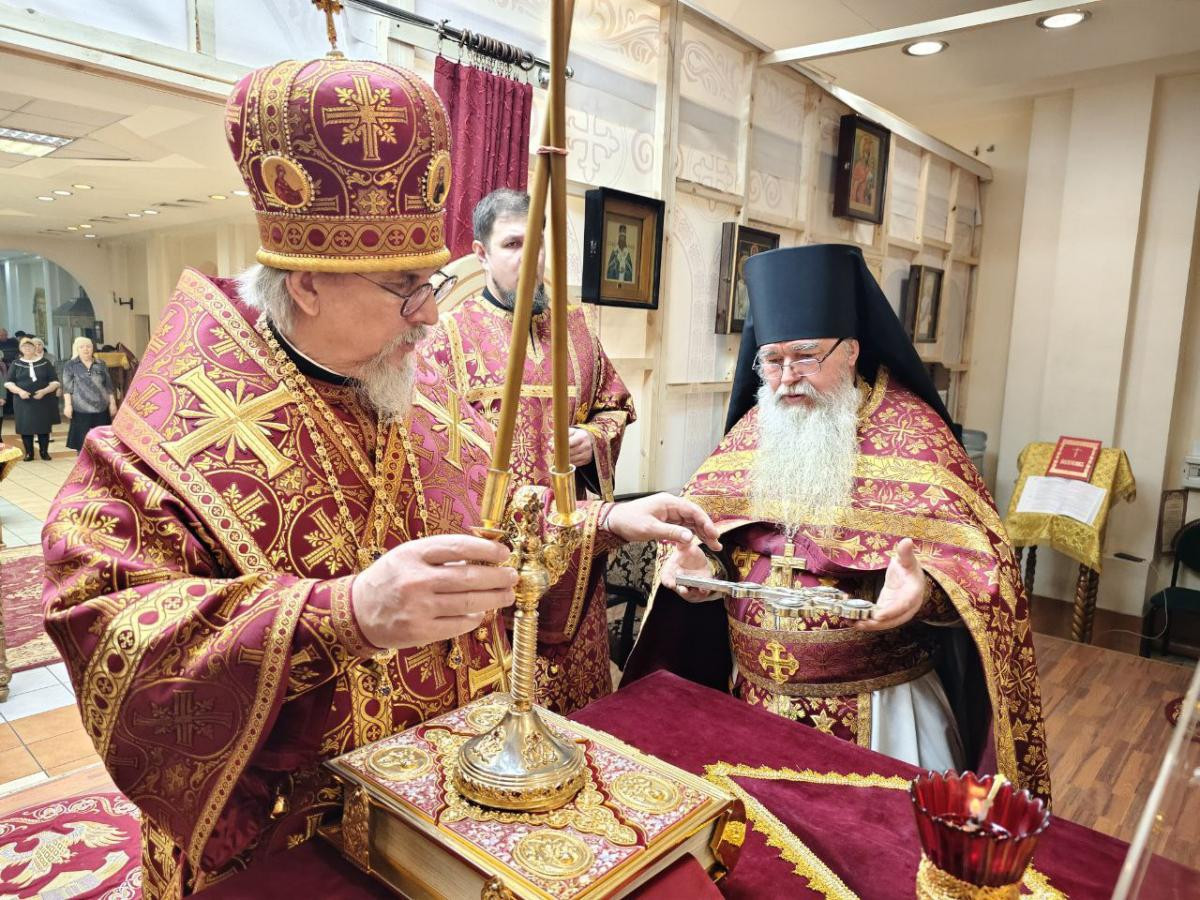 Его Высокопреосвященству сослужили: клирики Казанского кафедрального собора г. Читы протоиерей Михаил Андрусь и иерей Валерий Шаферов; насельник Успенского мужского монастыря г. Читы иеромонах Феофан (Груша); настоятель храма великомученика Димитрия Солунского г. Читы иерей Алексий Шаталов.