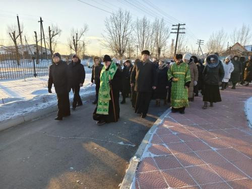 По заамвонной молитве было совершено славление Иоанну Кронштадтскому, чудотворцу и глава Забайкальской митрополии возглавил крестный ход вокруг храма.