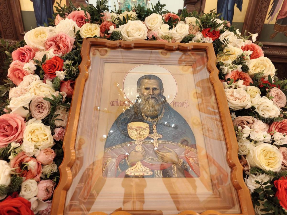 Митрополит Димитрий поздравил всех молящихся с престольным праздником храма и пожелал им помощи Божией и заступничества праведного Иоанна Кронштадтского во всех их делах и начинаниях.