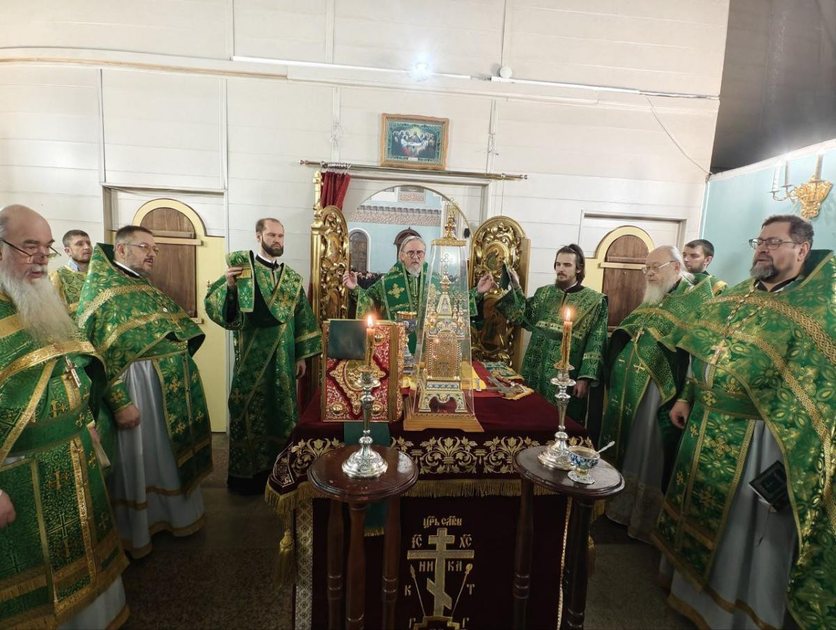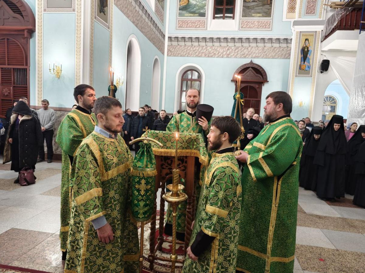 Его Высокопреосвященству сослужили: клирик Казанского кафедрального собора г. Читы протоиерей Михаил Андрусь; клирик женского монастыря в честь Всех святых, в земле Русской просиявших, в пгт. Атамановка Читинского района иеромонах Алипий (Федотов); насельник Успенского мужского монастыря г. Читы иеромонах Феофан (Груша); настоятель храма великомученика Димитрия Солунского г. Читы иерей Алексий Шаталов.
