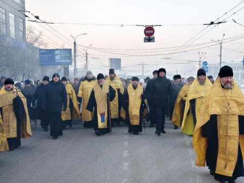 Крестный ход возглавили митрополит Читинский и Петровск-Забайкальский Димитрий и епископ Нерчинский и Краснокаменский Макарий.