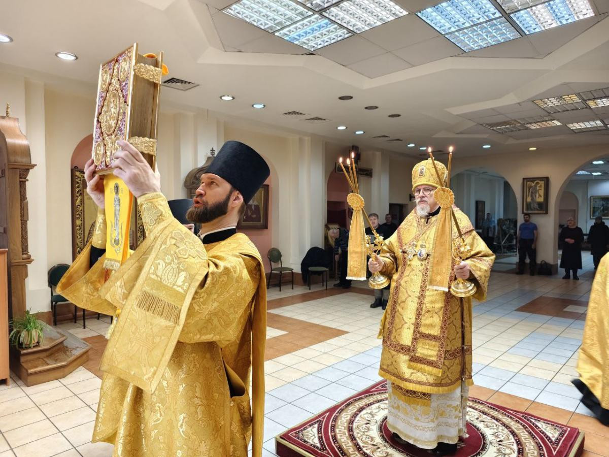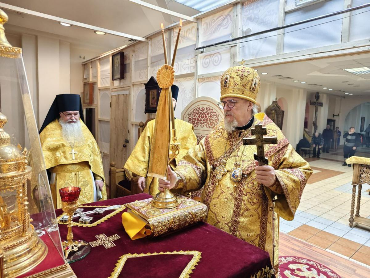 По заамвонной молитве владыка Димитрий совершил славление святителю Иосафу, епископу Белгородскому.