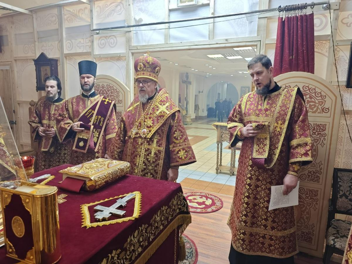 Его Высокопреосвященству сослужили: клирик Казанского кафедрального собора г. Читы протоиерей Андрей Федотов, настоятель храма Михаила Архангела п. Горный Улётовского района иеромонах Александр (Михайлов), настоятель храма великомученика Димитрия Солунского г. Читы иерей Алексий Шаталов, насельник Успенского мужского монастыря г. Читы иеромонах Феофан (Груша).