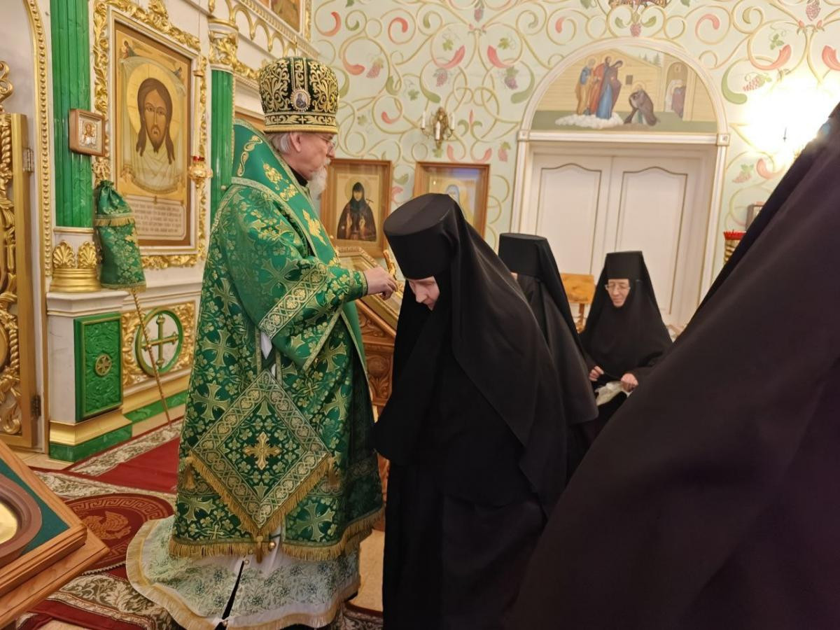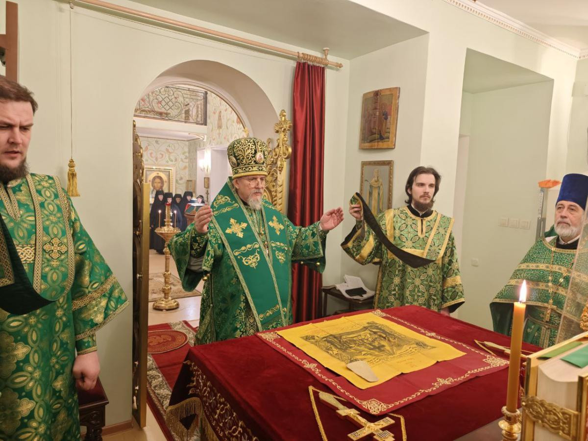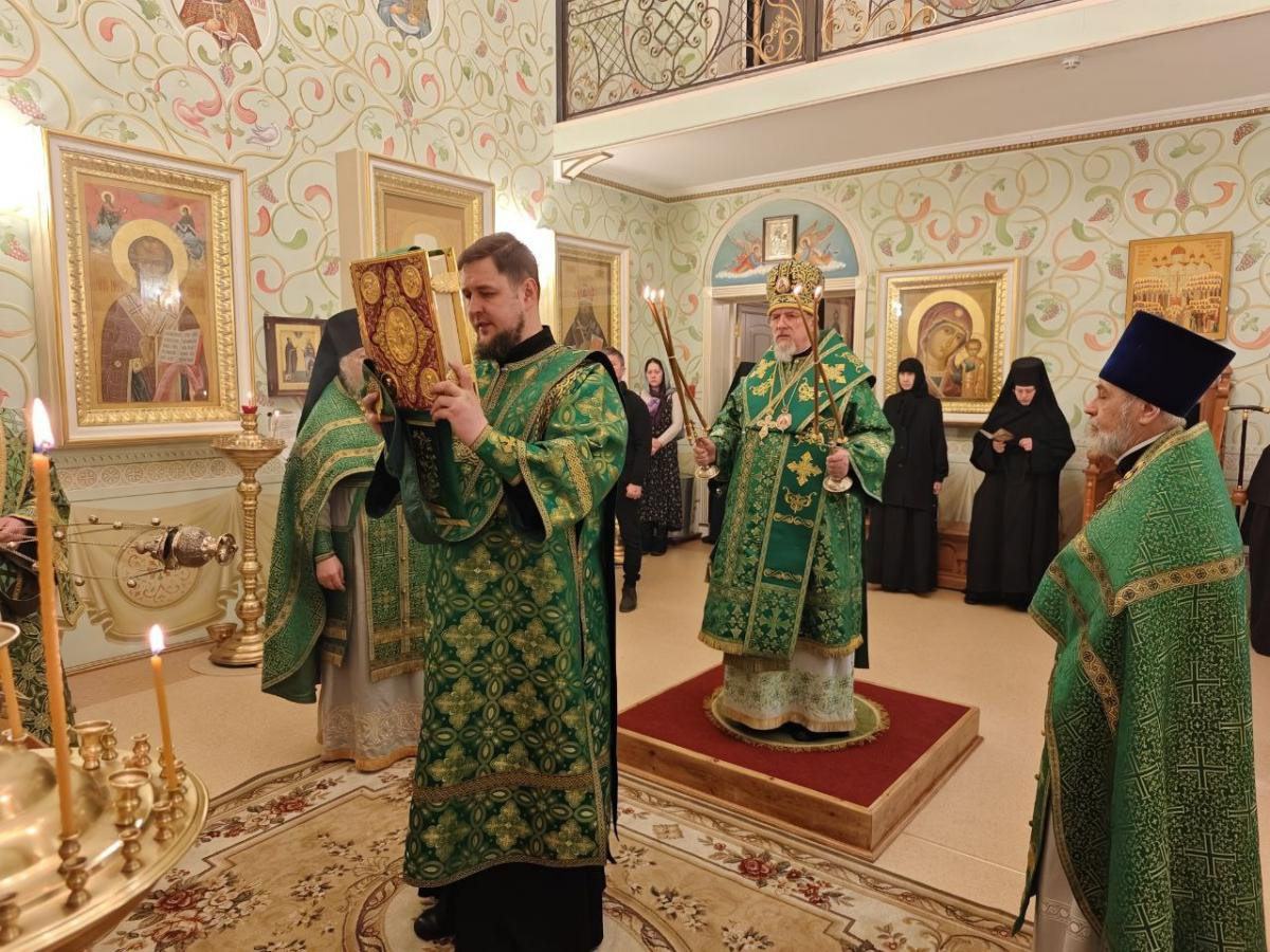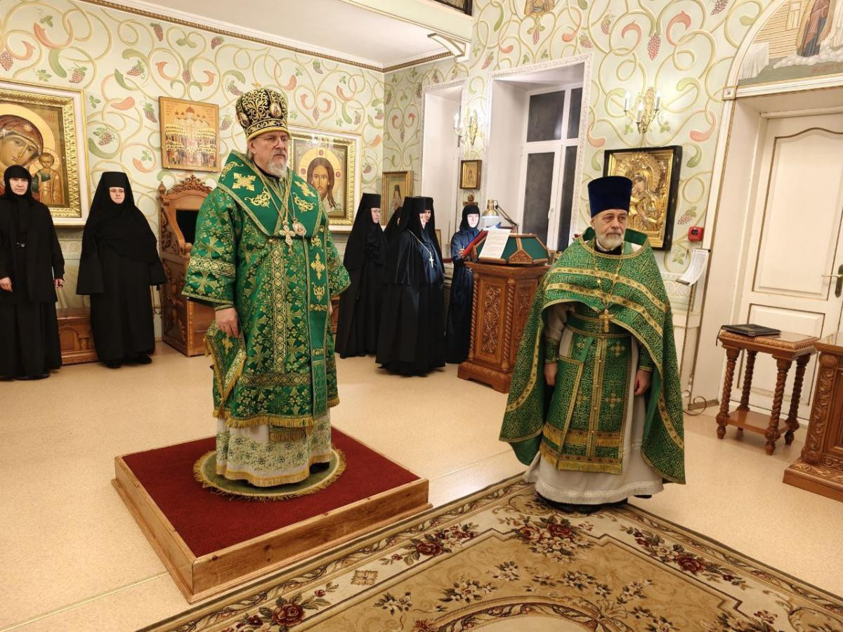 Его Высокопреосвященству сослужили клирики женского монастыря иеромонах Алипий (Федотов) и иерей Владимир Новоспасский.
