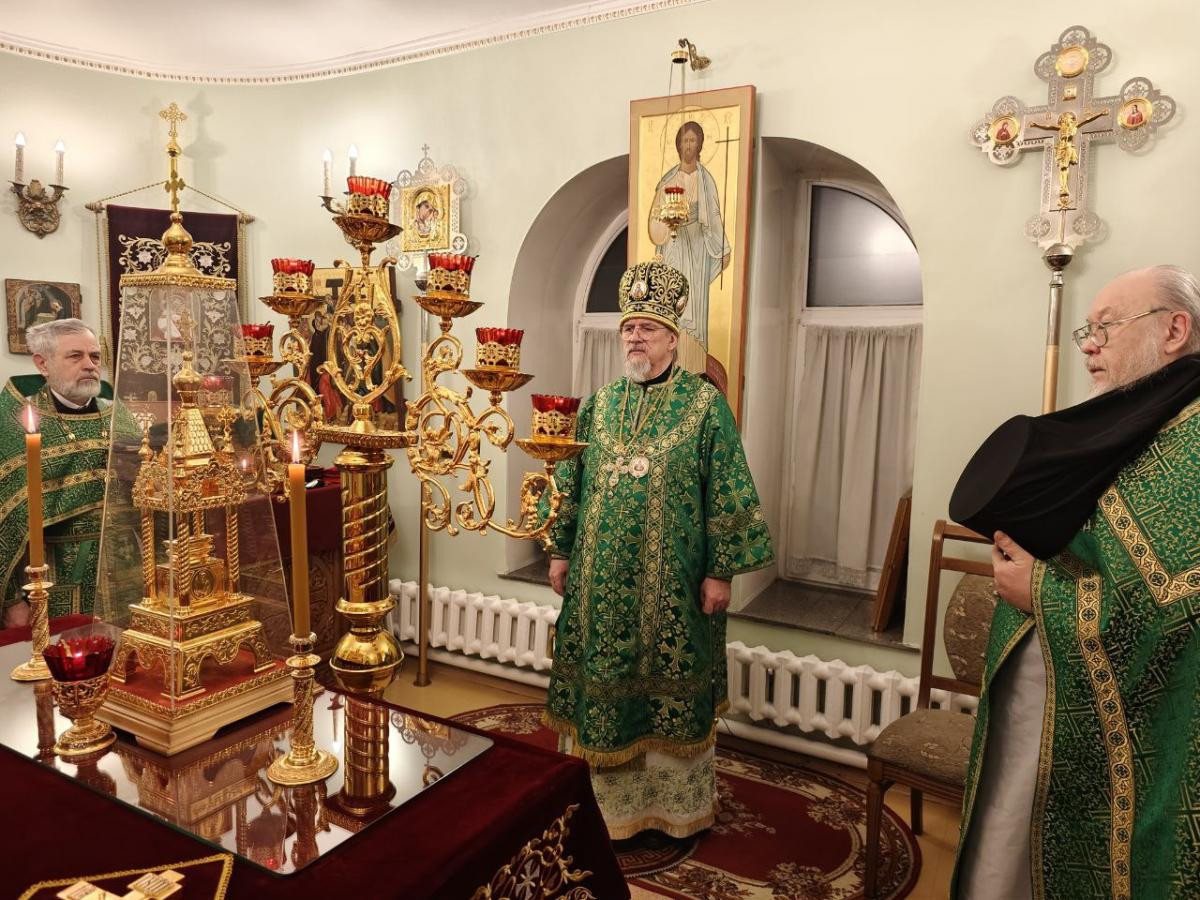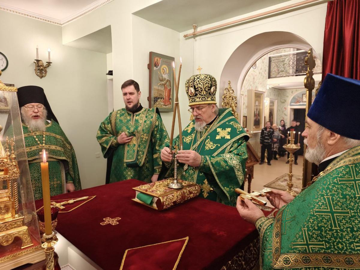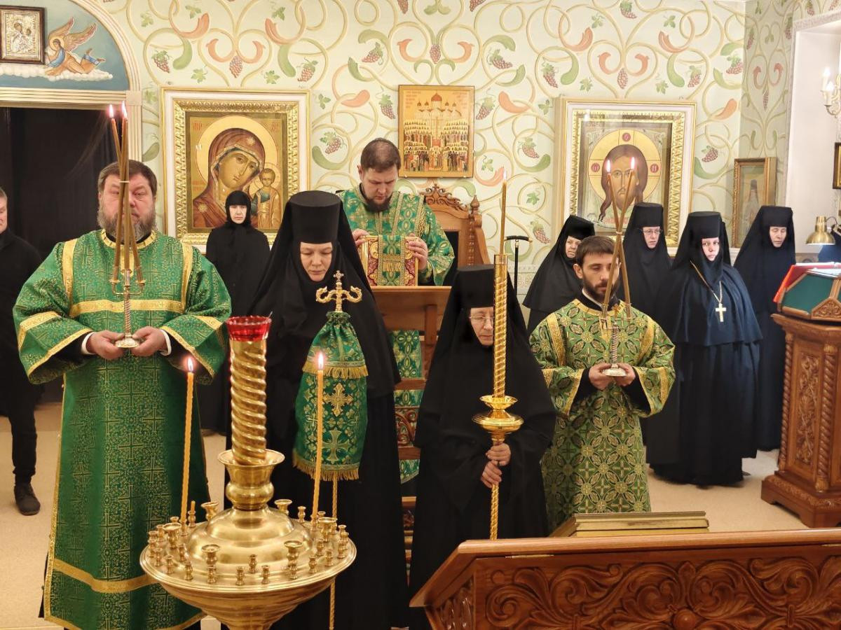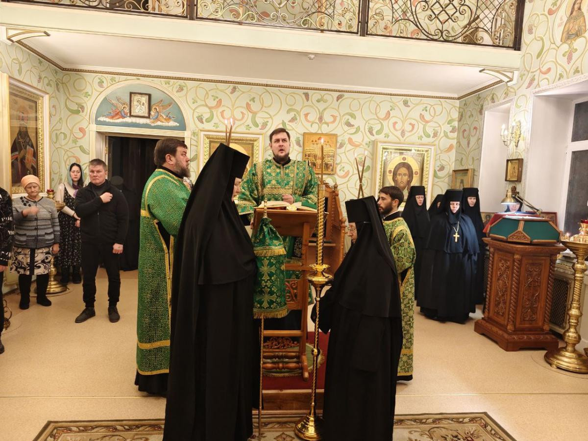 Его Высокопреосвященству сослужили клирики женского монастыря иеромонах Алипий (Федотов) и иерей Владимир Новоспасский.