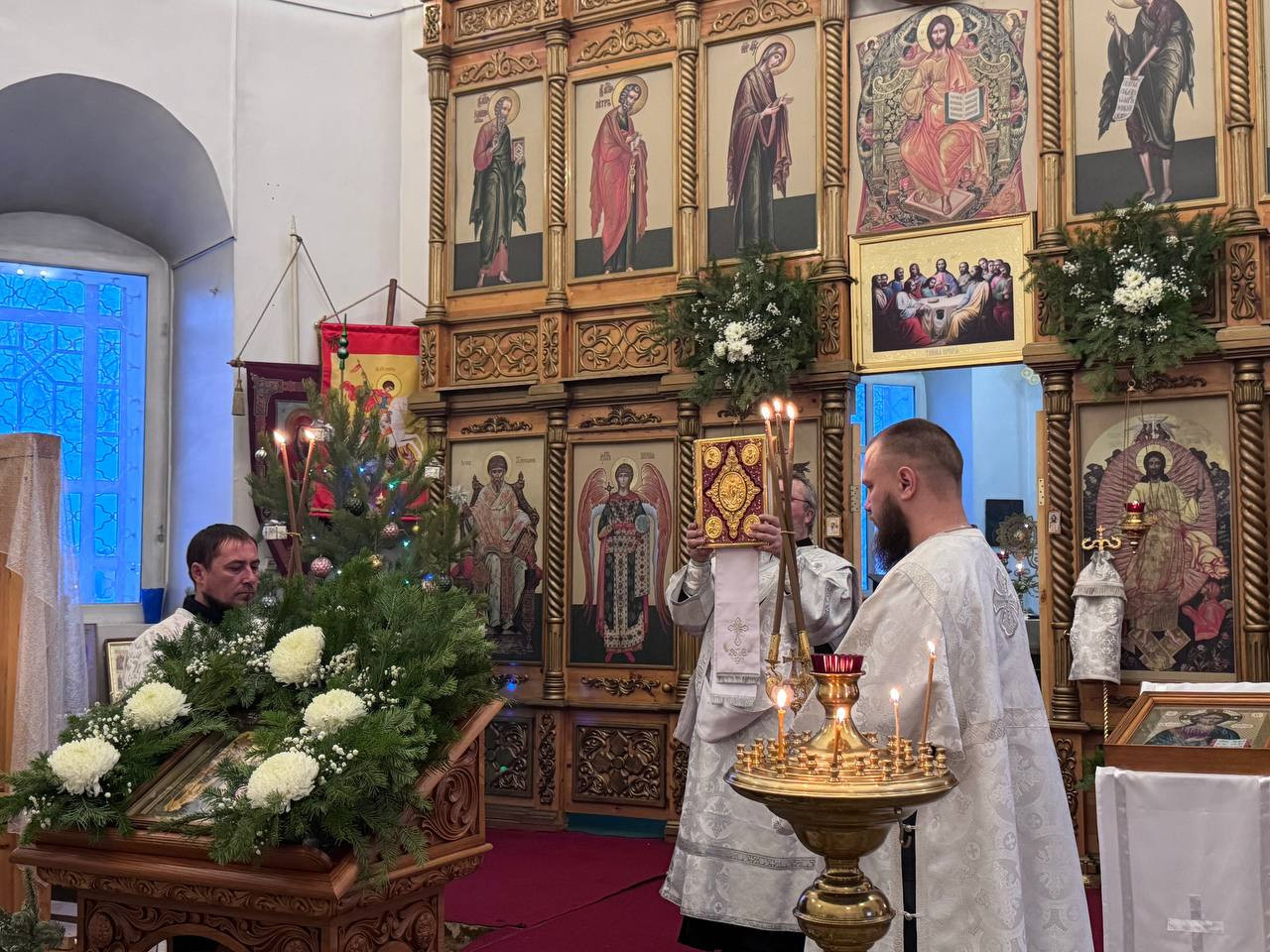 Его Преосвященству сослужил клирик Воскресенского кафедрального собора г. Нерчинска иерей Роман Пичуев.