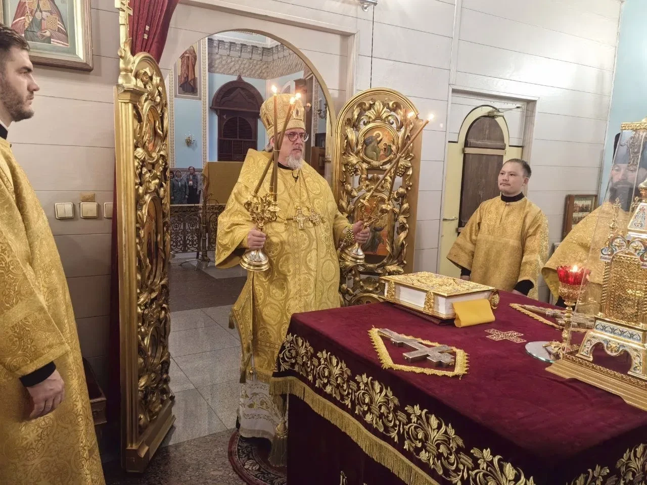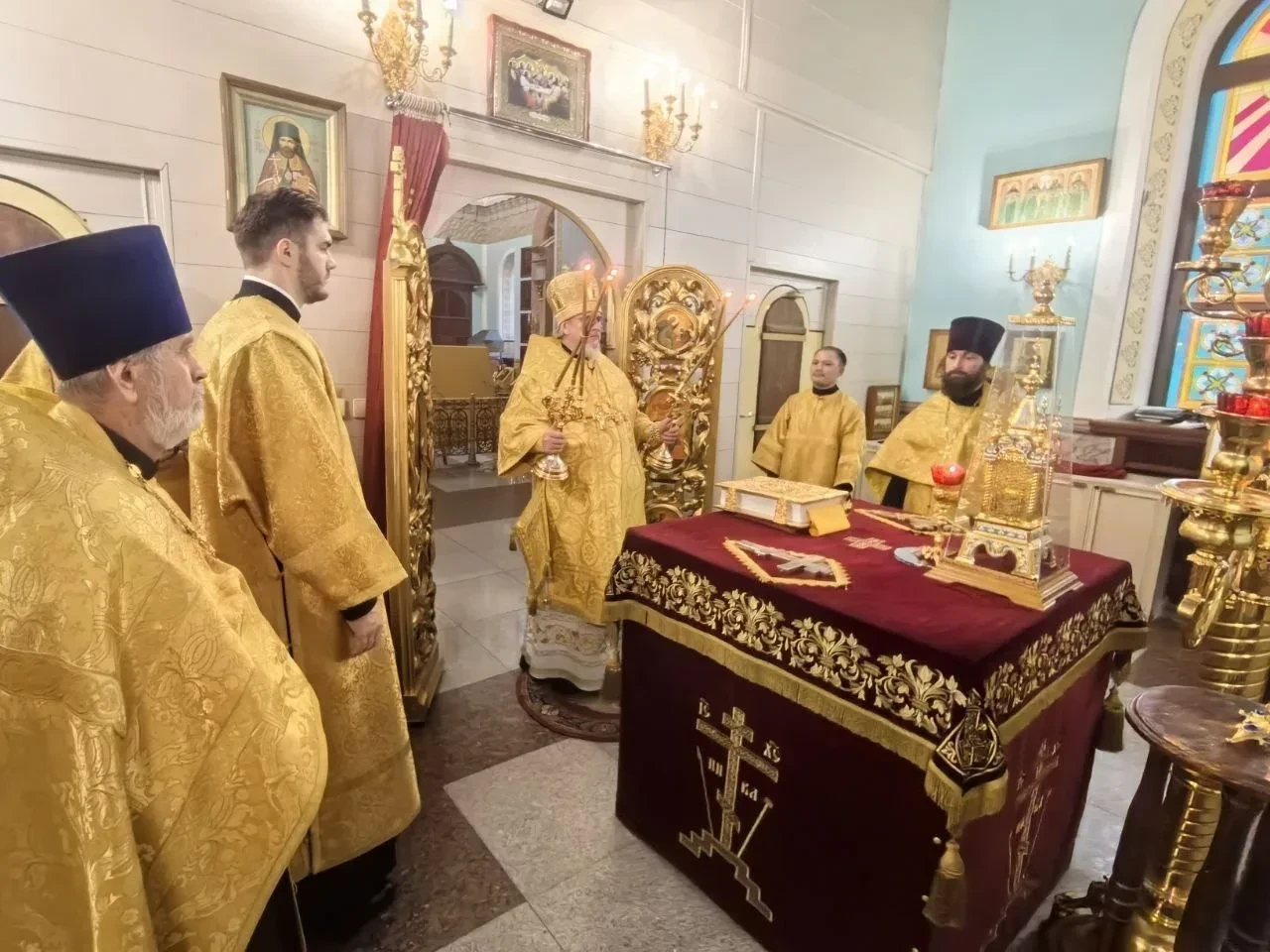 9 октября, 2025 года, преставление апостола и евангелиста Иоанна Богослова. Святителя Тихона, патриарха Московского и всея Руси. Митрополит Читинский и Петровск-Забайкальский Димитрий возглавил Божественную литургию в кафедральном соборе Казанской иконы Божией Матери города Читы. Его Высокопреосвященству сослужили: протоиерей Михаил Андрусь; иерей Владимир Новоспасский; иерей Алексей Янковский; иерей Валерий Шаферов. Диаконский чин: иеродиакон Иннокентий (Федоров); диакон Дионисий Донской; диакон Кирилл Усынин. По благословению Святейшего Патриарха Московского и всея Руси Кирилла на сугубой ектении были вознесены особые прошения и молитва о Святой Руси. Проповедь перед причастием произнес иерей Владимир Новоспасский. Богослужебные песнопения исполнил архиерейский молодёжный хор Казанского кафедрального собора г. Читы, под руководством Татьяны Александровны Медведевой. По завершении литургии Владыка с духовенством и прихожанами совершили славление апостолу и евангелисту Иоанну Богослову и святителю Тихону патриарху Московскому и всея Руси. По окончании богослужения, глава Забайкальской митрополии обратился к верующим с архипастырским словом назидания и благословил молящихся.
