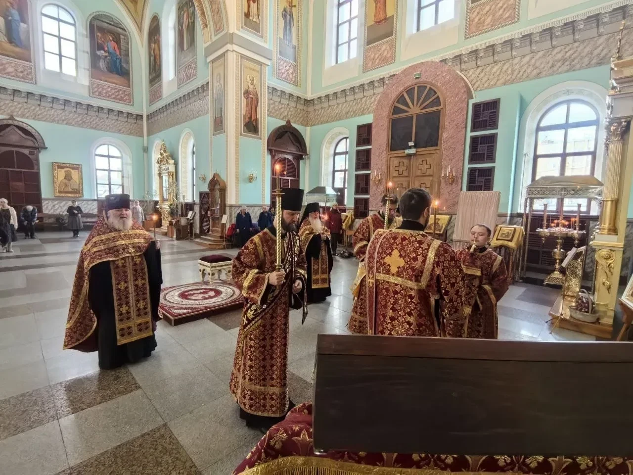Вечером, 10 октября 2025 года, день памяти преподобных схимонаха Кирилла и схимонахини Марии, родителей прпеподобного Сергия Радонежского. Обретение мощей первомученницы великой княгини Елисаветы. Митрополит Читинский и Петровск-Забайкальский Димитрий возглавил Всенощное бдение в кафедральном соборе Казанской иконы Божией Матери города Читы.
