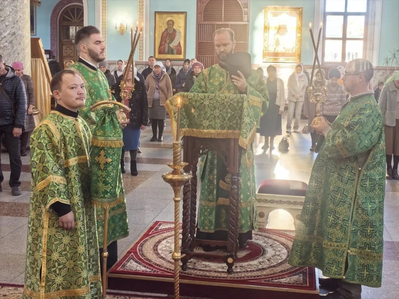 11 октября 2025 года, день памяти преподобных схимонаха Кирилла и схимонахини Марии, родителей преподобного Сергия Радонежского. Обретение мощей первомученницы великой княгини Елисаветы. Митрополит Читинский и Петровск-Забайкальский Димитрий возглавил Божественную литургию в кафедральном соборе Казанской иконы Божией Матери города Читы.