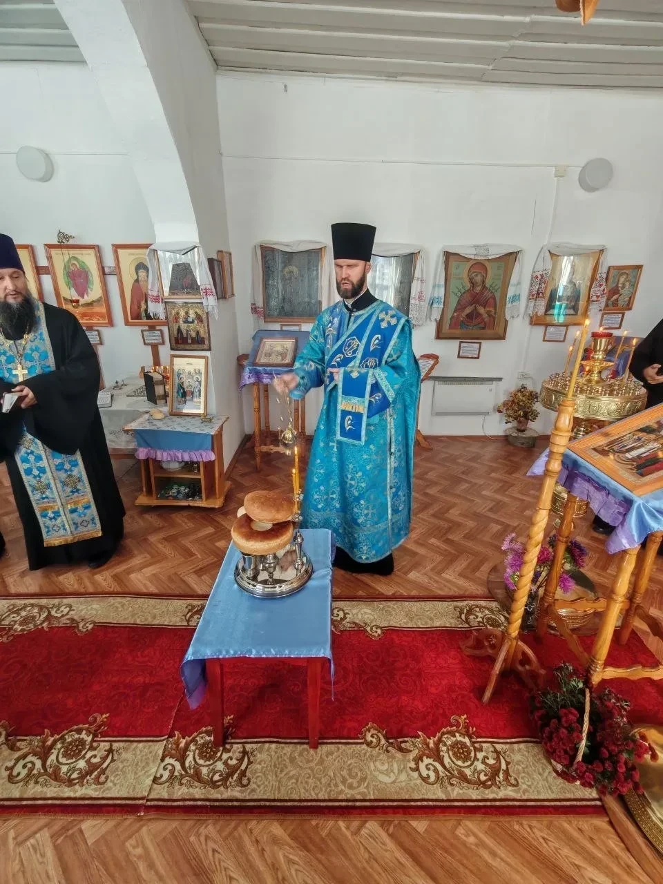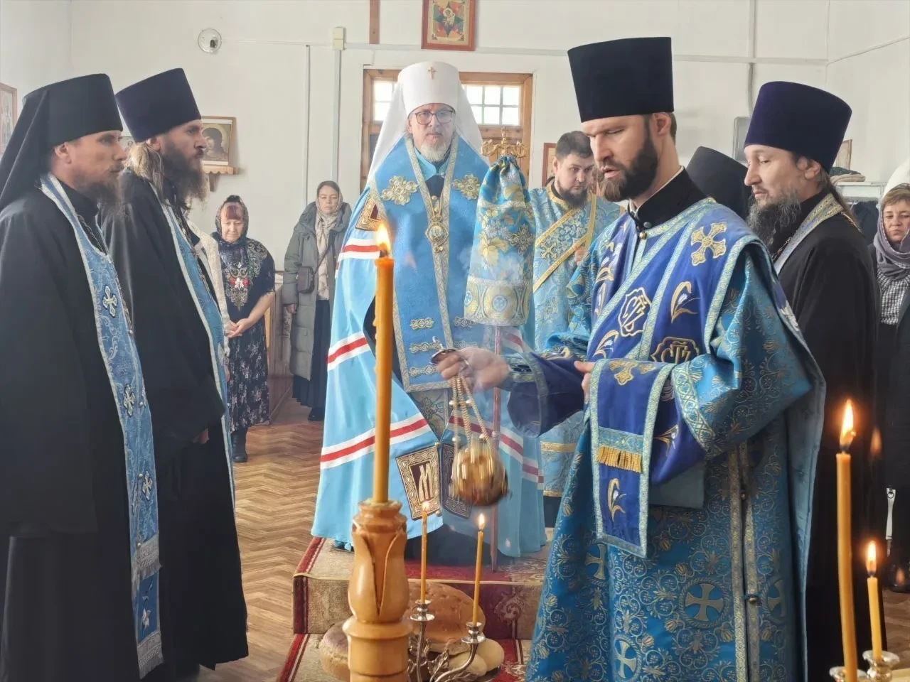 13 октября, 2025 года, Покрова Пресвятой Владычицы нашей Богородицы и Приснодевы Марии. Ап. от 70-ти Анании. Прп. Романа Сладкопевца. Митрополит Читинский и Петровск-Забайкальский Димитрий возглавил Великую вечерню с литией, в храме Архангела Михаила села Архангельское. Его Высокопреосвященству сослужили: настоятель храма - протоиерей Игорь Хованский; настоятель Архиерейского подворья Иоанно-Предтеченского Варлаама-Чикойского мужского монастыря Красночикойского района - иеромонах Евстафий (Третьяков); настоятель Князе-Владимирского храма города Хилок - иеромонах Тихон (Каськов); настоятель соборного храма Покрова Пресвятой Богородицы города Петровска-Забайкальского - иерей Валерий Дёмин. Диаконский чин возглавили: иеродиакон Иннокентий (Фёдоров); диакон Илия Хасанов. Богослужебные песнопения исполнил архиерейский молодёжный хор Казанского кафедрального собора г. Читы, под руководством Татьяны Александровны Медведевой. На Великой вечерне была совершена лития с освящением хлебов, вина и елея. По окончании богослужения, глава Забайкальской митрополии обратился к верующим с архипастырским словом назидания и благословил молящихся.