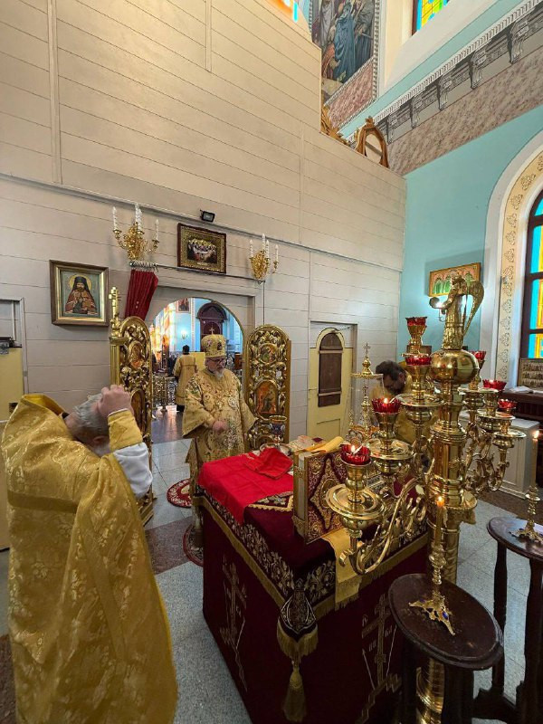 18 октября 2025 года, память святителей Московских: Петра, Феогноста, Алексия, Киприана, Фотия, Ионы, Геронтия, Иоасафа, Макария, Филиппа, Иова, Ермогена, Тихона, Петра, Филарета, Иннокентия и Макария. Митрополит Читинский и Петровск-Забайкальский Димитрий возглавил Божественную литургию в кафедральном соборе Казанской иконы Божией Матери города Читы.