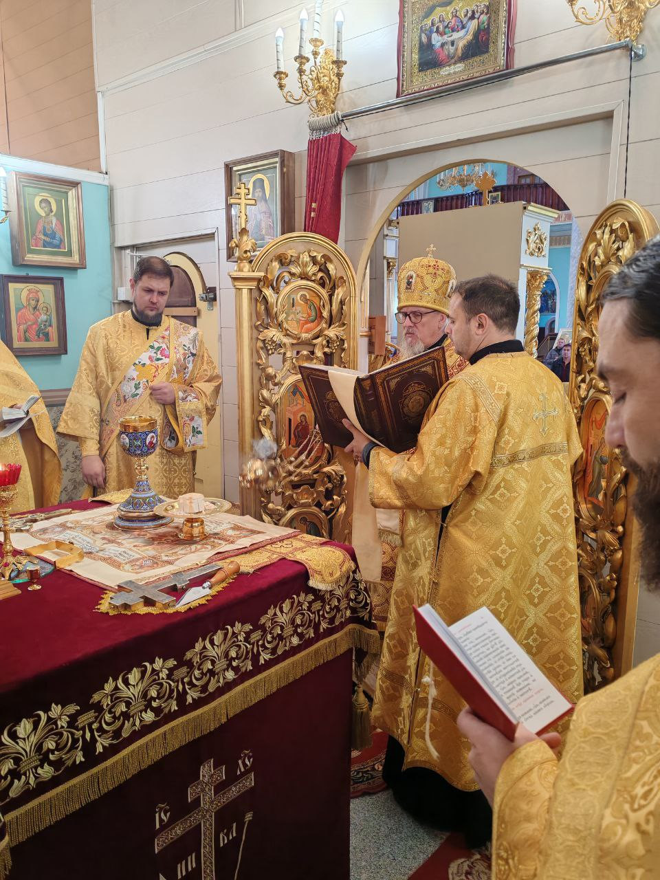 29 октября 2025 года, обретение мощей святителя Иоанна, митрополита Тобольского. Мученика Лонгина сотника, иже при Кресте Господнем. Преподобного Лонгина Коряжемского. Митрополит Читинский и Петровск-Забайкальский Димитрий возглавил Божественную литургию в кафедральном соборе Казанской иконы Божией Матери города Читы. Его Высокопреосвященству сослужили: клирик женского монастыря в честь Всех святых в России просиявших, в пгт. Атамановка Читинского района - иеромонах Алипий (Федотов); насельник Успенского мужского монастыря города Читы - иеромонах Феофан (Груша); настоятель храма в честь великомученика Димитрия Солунского - иерей Алексей Шаталов; ключарь Казанского кафедрального собора - иерей Валерий Шаферов. Диаконский чин возглавили: диакон Илия Хасанов; диакон Дионисий Донской. За богослужением молились прихожане и гости храма. По благословению Святейшего Патриарха Московского и всея Руси Кирилла на сугубой ектении были вознесены особые прошения и молитва о Святой Руси. Богослужебные песнопения исполнил хор Казанского кафедрального собора. Проповедь перед причастием произнес - иеромонах Алипий (Федотов). По окончании богослужения Глава Забайкальской митрополии обратился к верующим с архипастырским словом назидания и благословил молящихся.