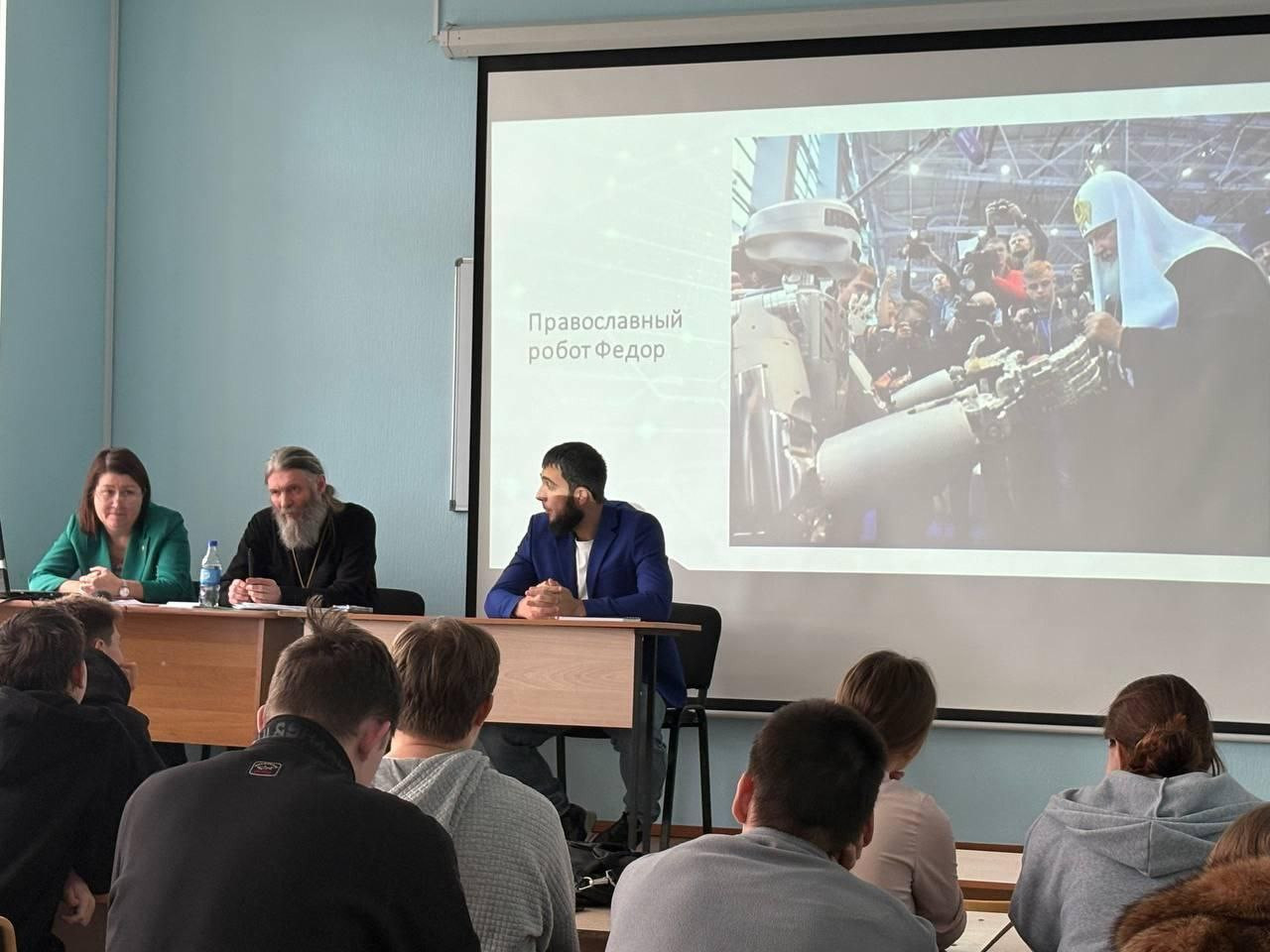 27 октября 2025 года на Энергетическом факультете ЗабГУ состоялось мероприятие по теме: «Бог не из машины. Искусственный интеллект и религия». Мероприятие проводилось в формате межконфессионального диалога. В качестве спикеров приглашены представители: Русской православной церкви - Забайкальской митрополии, Читинского дацана и Духовного управления мусульман Забайкальского края. В ходе работы были обсуждены следующие вопросы: Как сохранить целостность личности, не утратить ценностные ориентиры в эпоху информационного потока? Может ли религия помочь нам справиться с информационным шумом? Как традиционные религии относятся к идее «искусственного божества»? Может ли религия сосуществовать с «новой этикой», предлагаемой искусственным интеллектом? Возникают ли в настоящее время у религиозных конфессий проблемные вопросы со светским обществом? По благословению митрополита Читинского и Петровск- Забайкальского Димитрия в его работе принял участие председатель Отдела религиозного образования и катехизации протоиерей Павел Матвеев. В своих выступлениях он отметил, что ИИ, это реальность нашей жизни, с которой нам предстоит считаться. Особо была подчёркнута опасность, которая связана с внедрением новых технологий. В этих условиях крайне важным является осознание человеком своей подлинной сущности, как творения Божия. Именно вера, как опора на Бога может стать гарантией от превращения человека в придаток машины, научит принимать его этически верные решения. Мероприятие было организовано Координационным центром по противодействию идеологии терроризма ЗабГУ с целью укрепления гражданской идентичности, воспитания духовно - нравственных качеств личности студентов и формирования положительной оценки государственно-конфессиональной политики РФ и социальных программ традиционных религий.