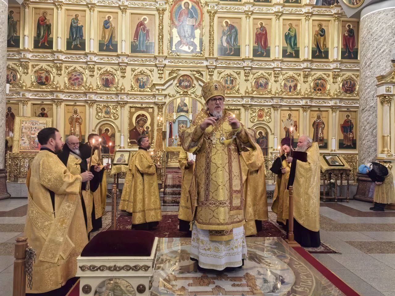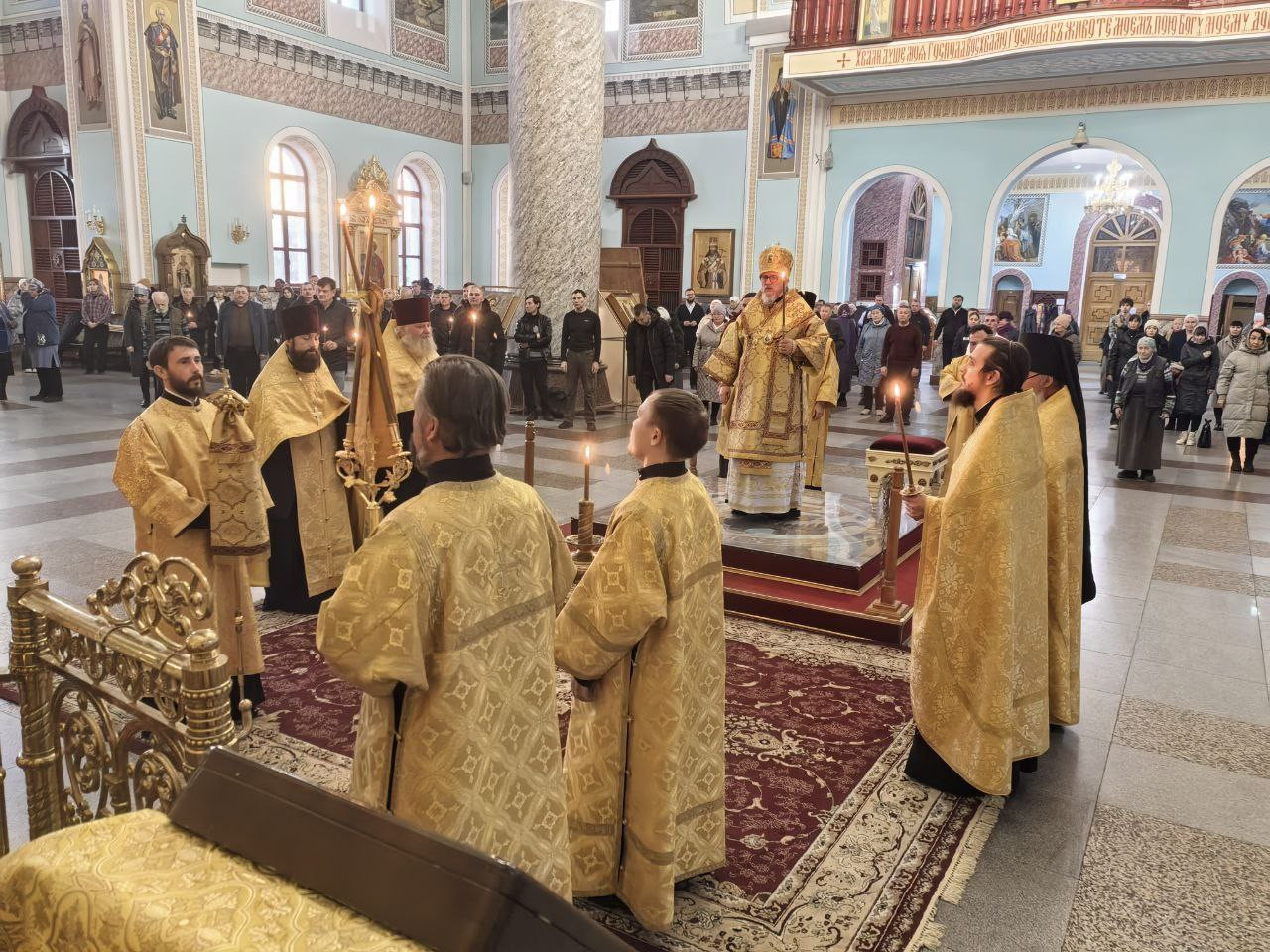 Вечером, 1 ноября 2025 года, Православная Церковь чтит память великомученника Артемия; преподобного Гавриила Самтаврийского. Митрополит Читинский и Петровск-Забайкальский Димитрий совершил Всенощное бдение в кафедральном соборе Казанской иконы Божией Матери города Читы. Богослужение проходило в главном пределе собора. Его Высокопреосвященству сослужили: клирик Казанского Кафедрального собора - протоиерей Андрей Федотов; насельник Успенского мужского монастыря города Читы - иеромонах Феофан (Груша); настоятель храма великомученика Димитрия Солунского города Читы - иерей Алексий Шаталов; ключарь Казанского кафедрального собора - иерей Валерий Шаферов; клирик Казанского Кафедрального собора - иерей Дионисий Миронов. Диаконский чин: иеродиакон Иннокентий (Федоров); диакон Михаил Воробьев; диакон Илия Хасанов; диакон Дионисий Донской. Богослужебные песнопения исполнил архиерейский молодёжный хор Казанского кафедрального собора города Читы под руководством Татьяны Александровны Медведевой. Во время Всенощного бдения были совершены великая вечерня, лития с освящением хлебов, вина и елея, утреня с чтением Евангелия и помазанием всех молящихся освященным елеем. За богослужением молились прихожане собора.