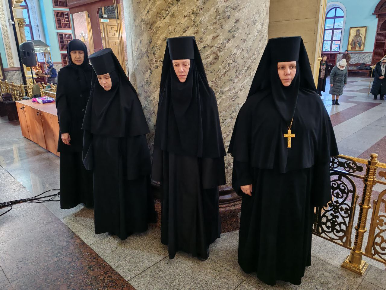 За богослужением молилась настоятельница женского монастыря в честь Всех святых в России просиявших игумения Ольга (Василькова) с сестрами обители.